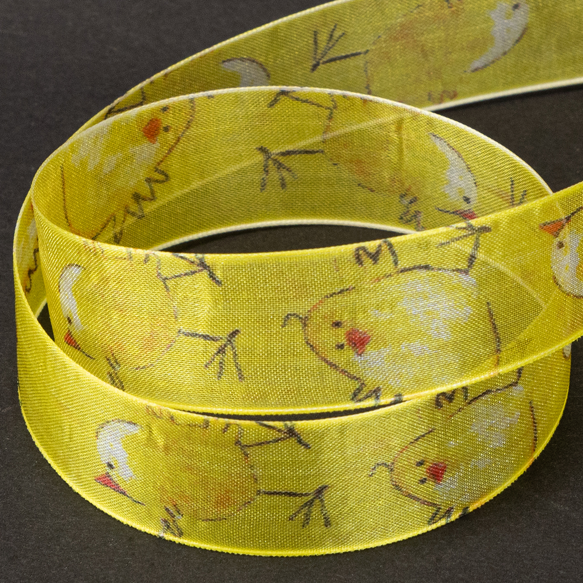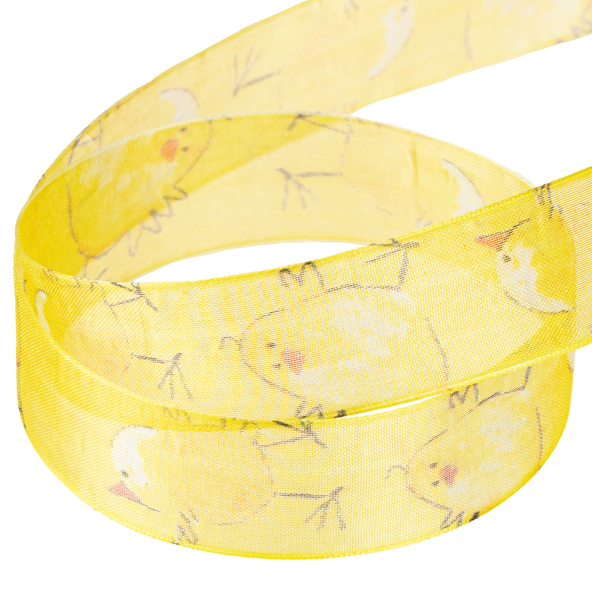 Organzabånd med kylling gavebånd gult 25mm 20m