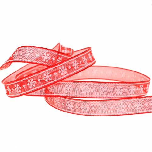 Med dette fine organzabåndet kan du presentere julepakkene dine på en spesielt vakker måte. Det elegante julebåndet holdes i festlig rødt og er trykt med hvite snøfnugg. Båndet er et stilig blikkfang takket være materialvalget for den gjennomsiktige, lett glitrende organzaen med mer stabile kanter.