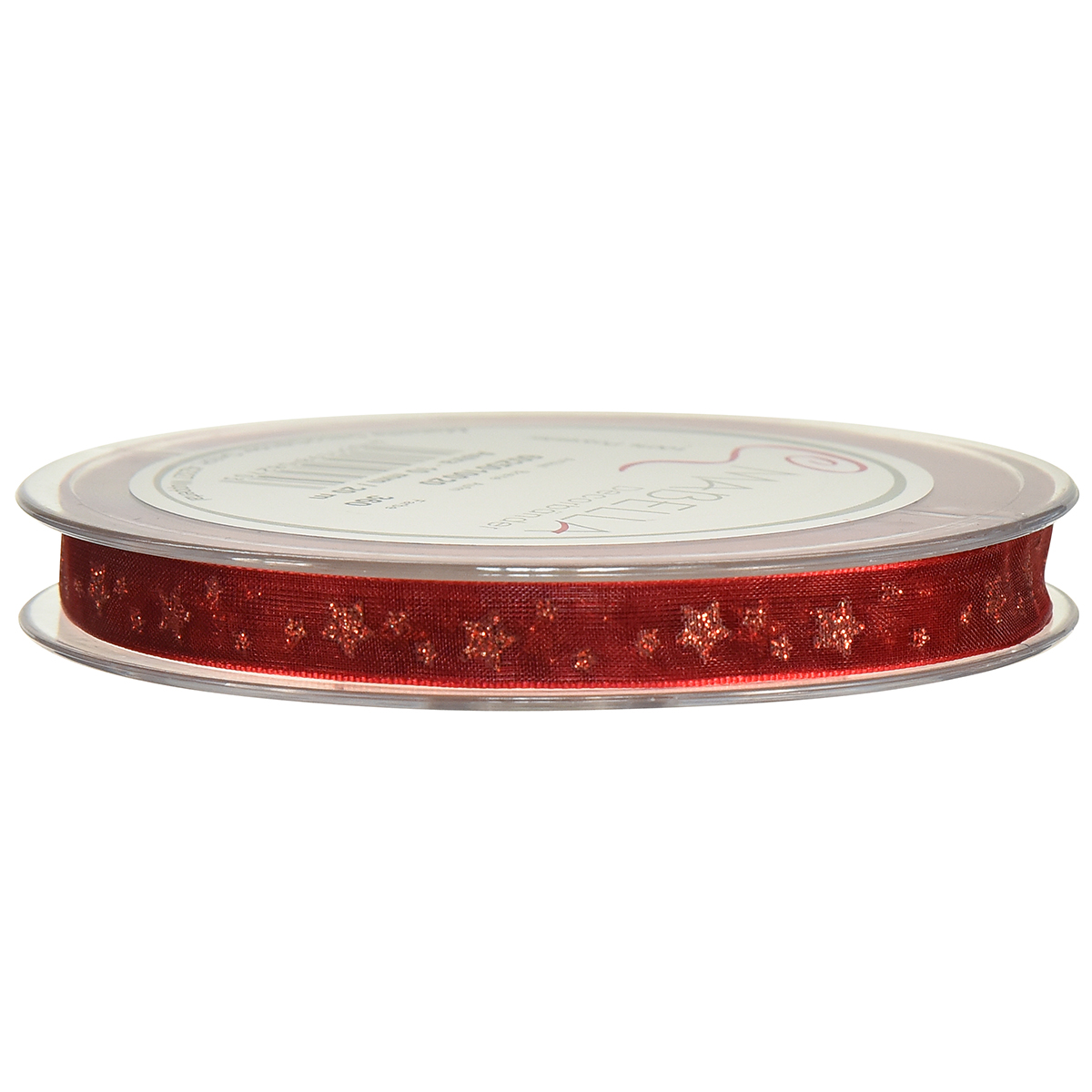 Legg til et snev av festlighet til julepynten din med det røde organzabåndet med glitrende stjerner! Det fine, gjennomskinnelige dekorative båndet i knallrødt, dekorert med skinnende stjerner, skaper en festlig atmosfære og fremkaller julefølelser.