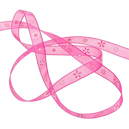 Hvis du vil legge til farge på en vårbukett, så velg dette organzabåndet i rosa med et mønster! Det dekorative båndet av høy kvalitet er trykt med forskjellige blomster, hvorav noen også vises med hvite blader, og har en fin blank effekt og et halvt gjennomsiktig utseende. Båndet passer veldig bra som dekorasjon til en blomsterbukett, som du dyktig kan pakke rundt med den. De fine kantene lar deg også knytte pene buer med dem, som du kan bruke til å fullføre buketten på den ene siden og til å lage et borddekorasjon til spisestuen på den andre.Men også et utstillingsvinduedekorasjon kan gjøres veldig effektivt med dette silkebåndet og dekoreres på en vårlignende måte. Du har også muligheten til å pakke stoffbåndet rundt blomsterpotter, plantepotter og til og med vaser for å forbedre dem perfekt. Og hvis du vil dekorere gaver til kundene dine på en veldig elegant måte, så bruk stoffet som et elegant gavebånd!