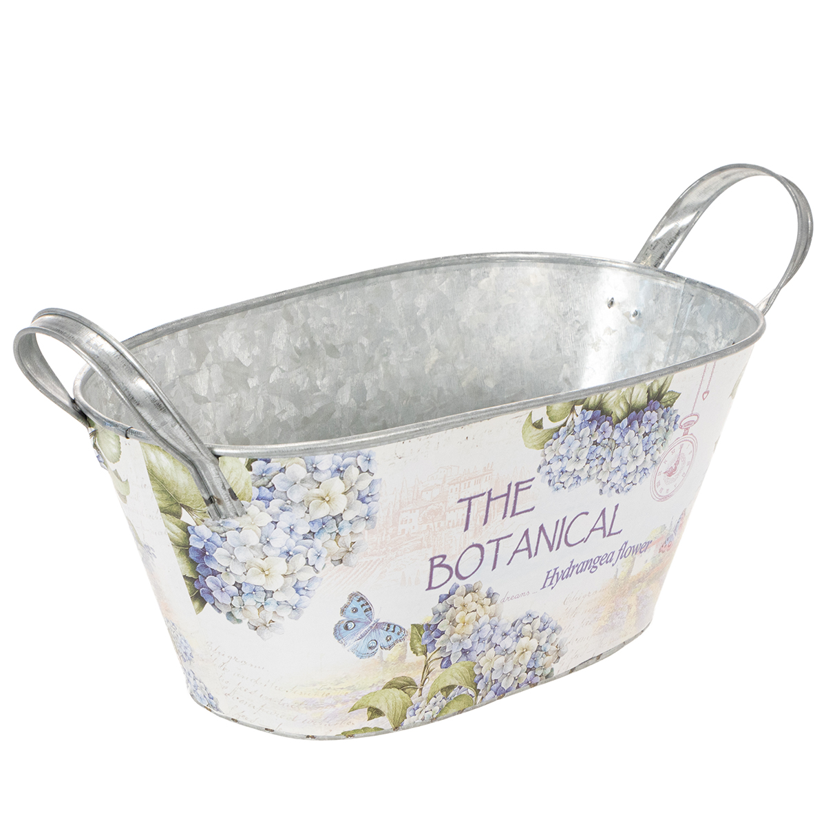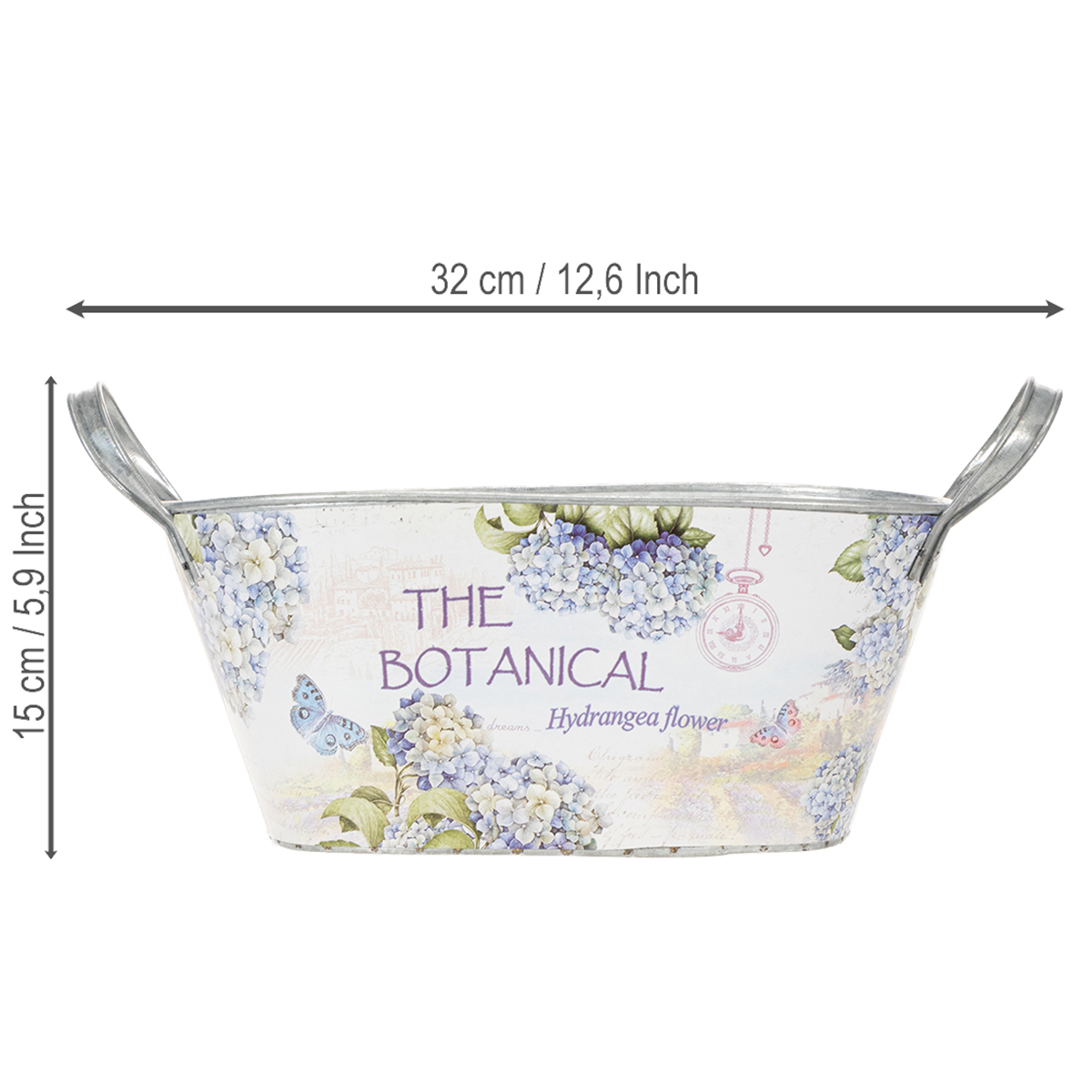 Oval metallblomsterskål med håndtak, til hortensia, 32 × 15 × 15 cm