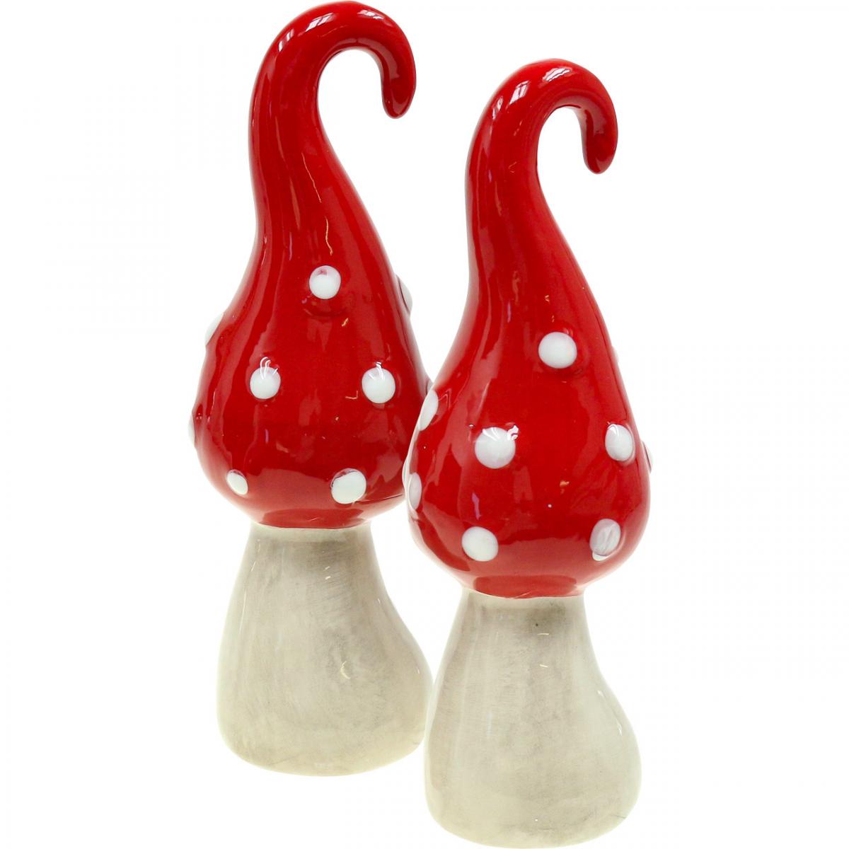 Paddehakk keramikk dekorative sopp rød hvit Ø5cm H15,5cm 2stk