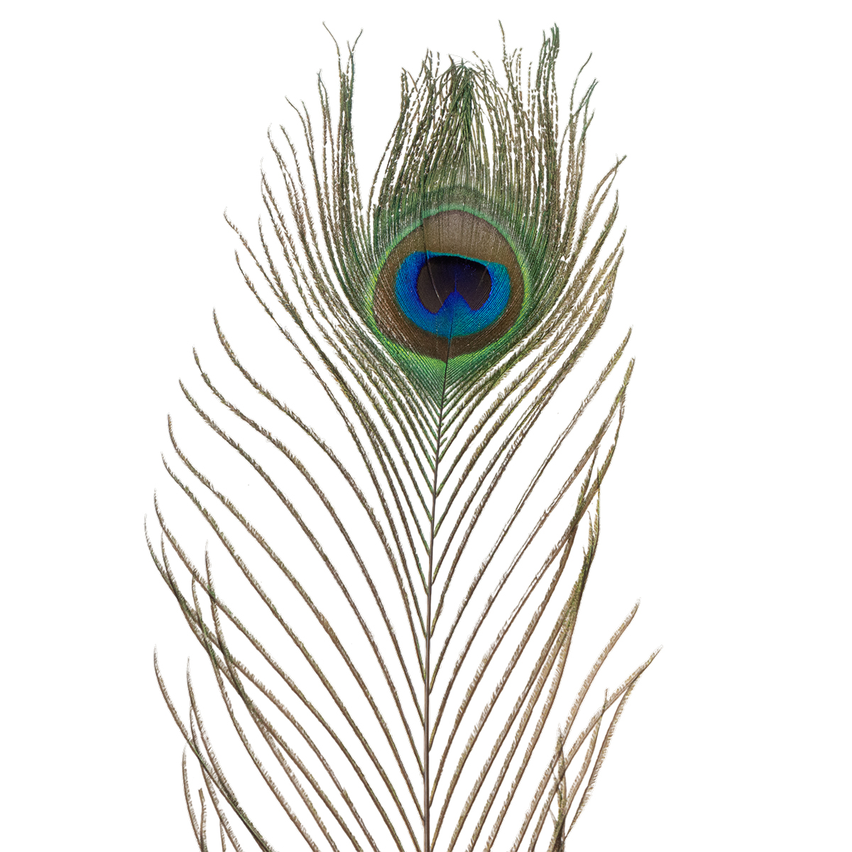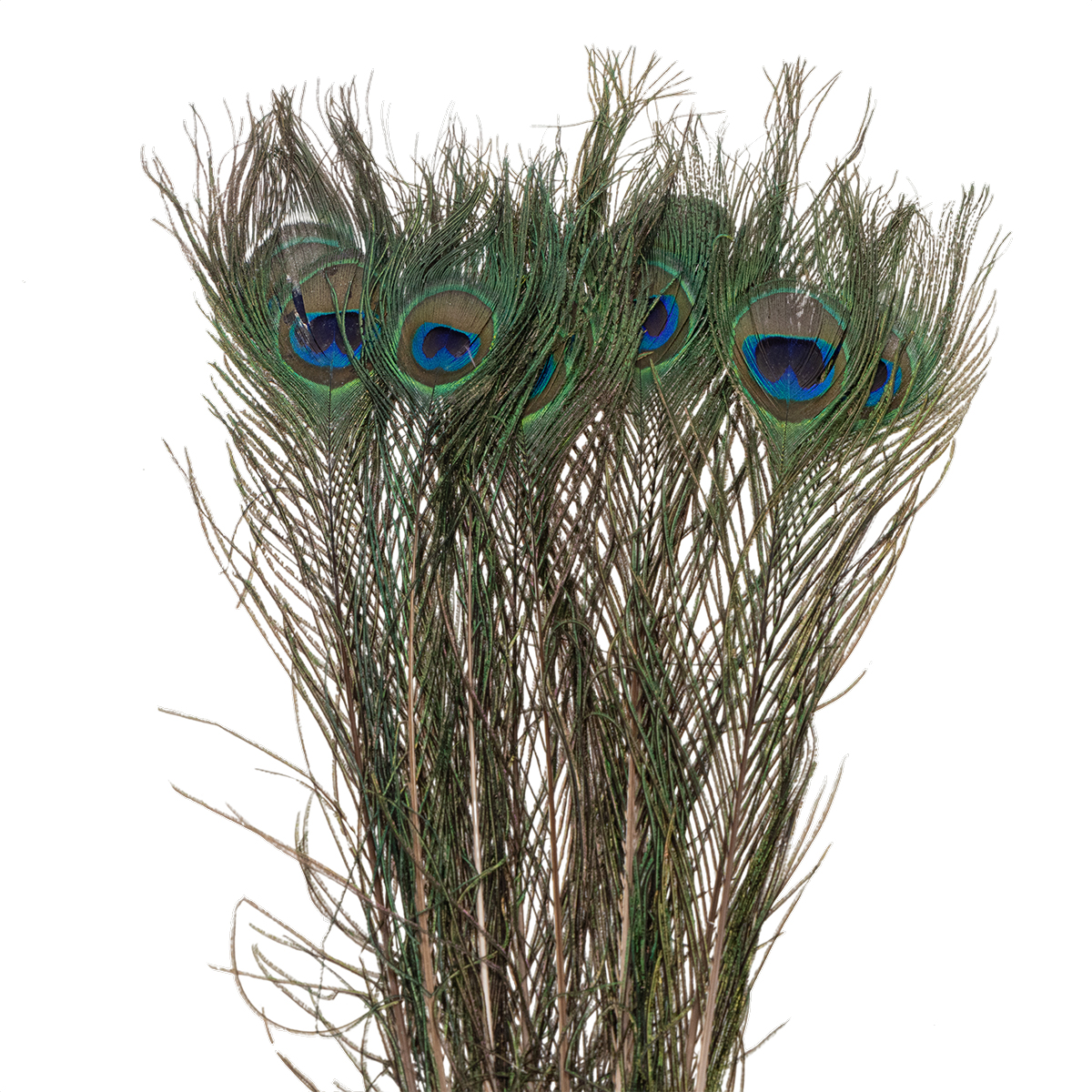 Påfuglfjær, ekte fuglefjær til håndverk og dekorasjon, 55 cm, 10 stk.