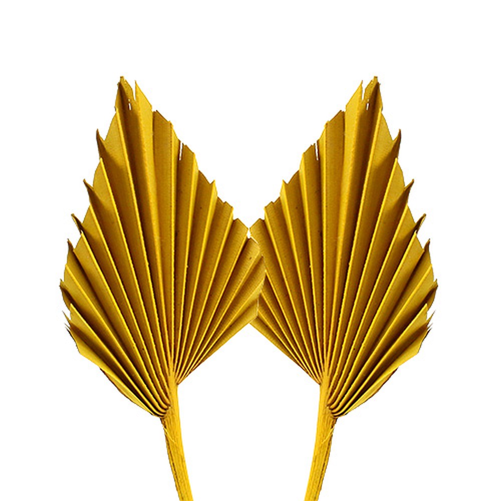 Mini Palmspear i gult er en forsyningspakke i en pose med totalt 100 stykker. De formede hodene, som også minner om en spade, er omtrent 12 centimeter store. De totale lengdene med pinnen varierer imidlertid, ettersom palmebladene er naturlige produkter som varierer litt i dimensjonene. De er rundt 30 til 40 centimeter høye.
