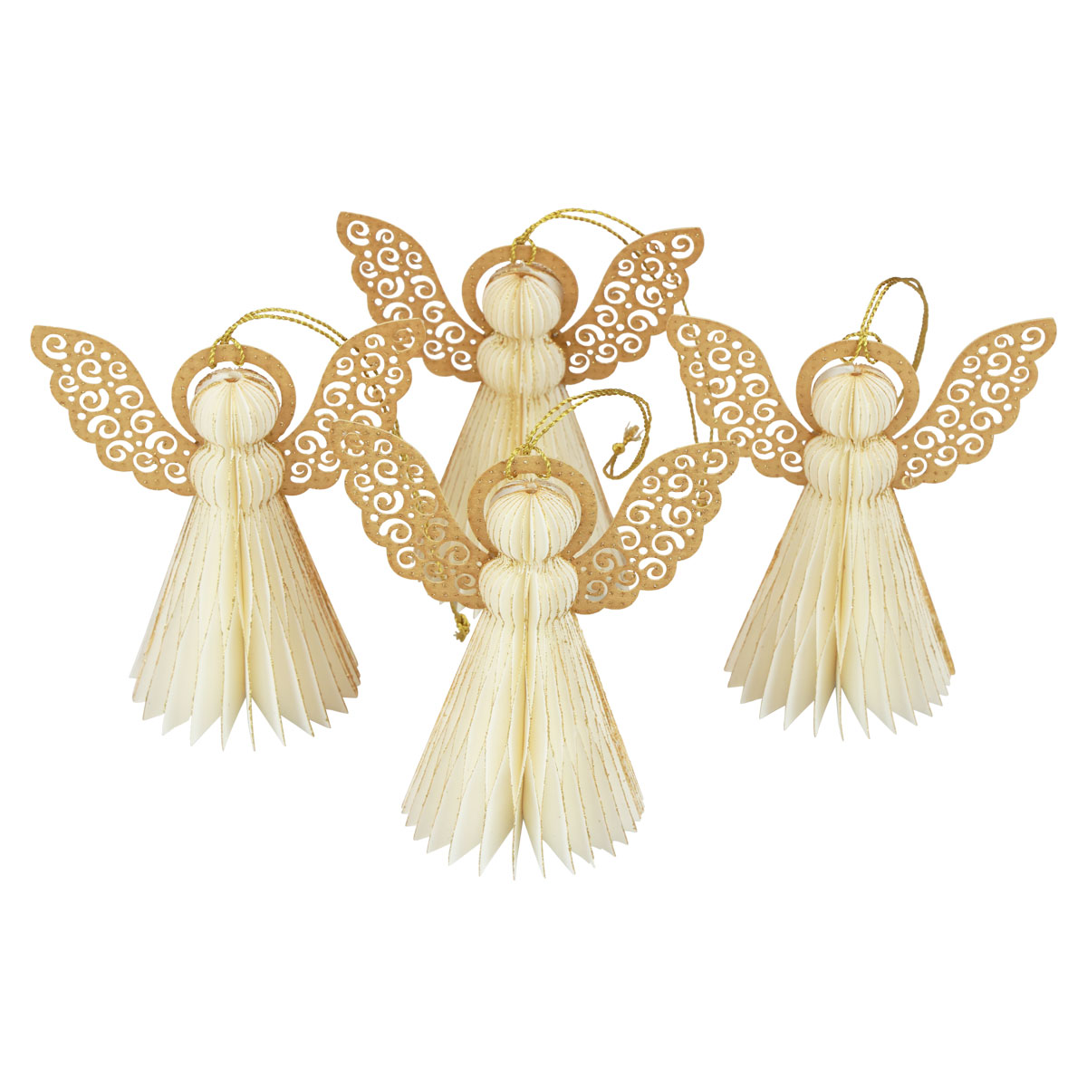 Papirengel juleenglepynt papir hvit H12cm 4 stk