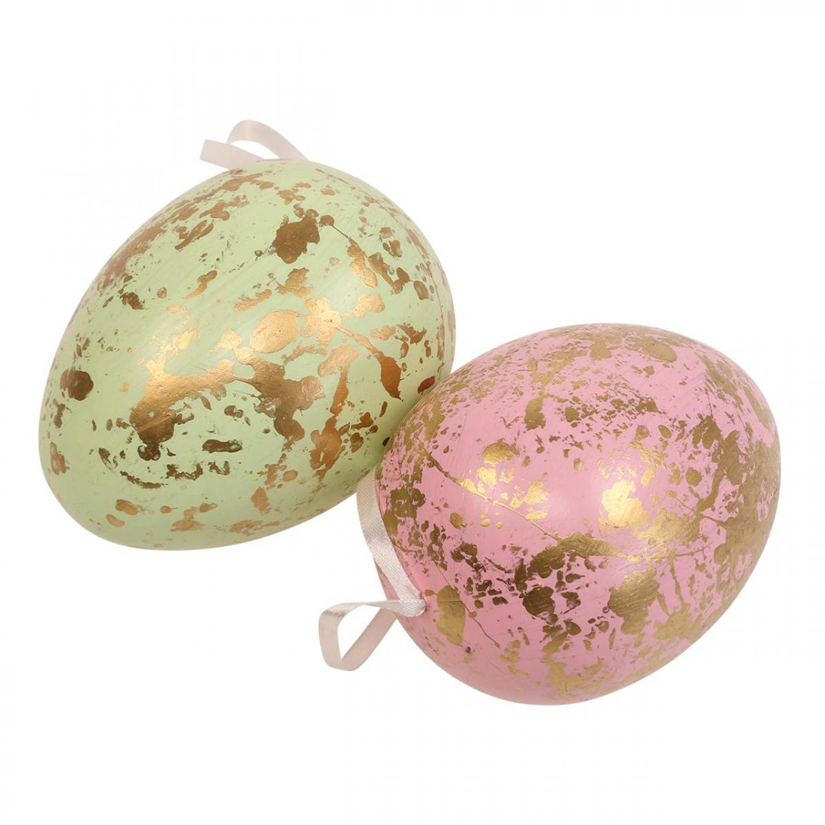 Påskeegg til å henge opp pynteegg rosa, grønt, gull 20cm 2stk