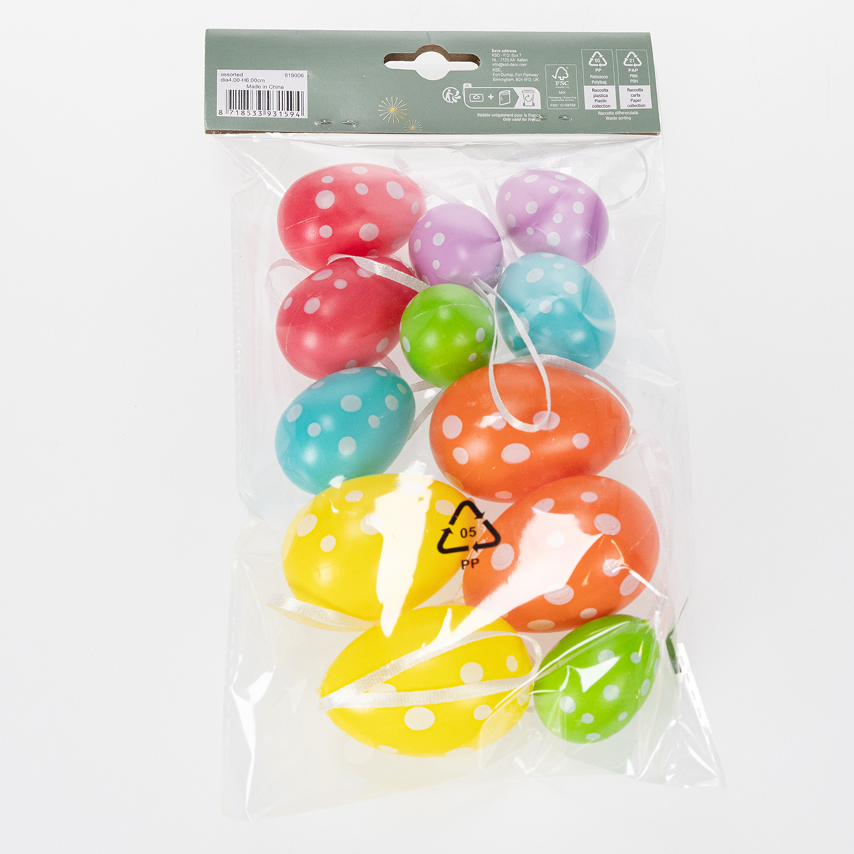 Påskeegg til oppheng, assorterte farger, 6 cm, 12 stk.