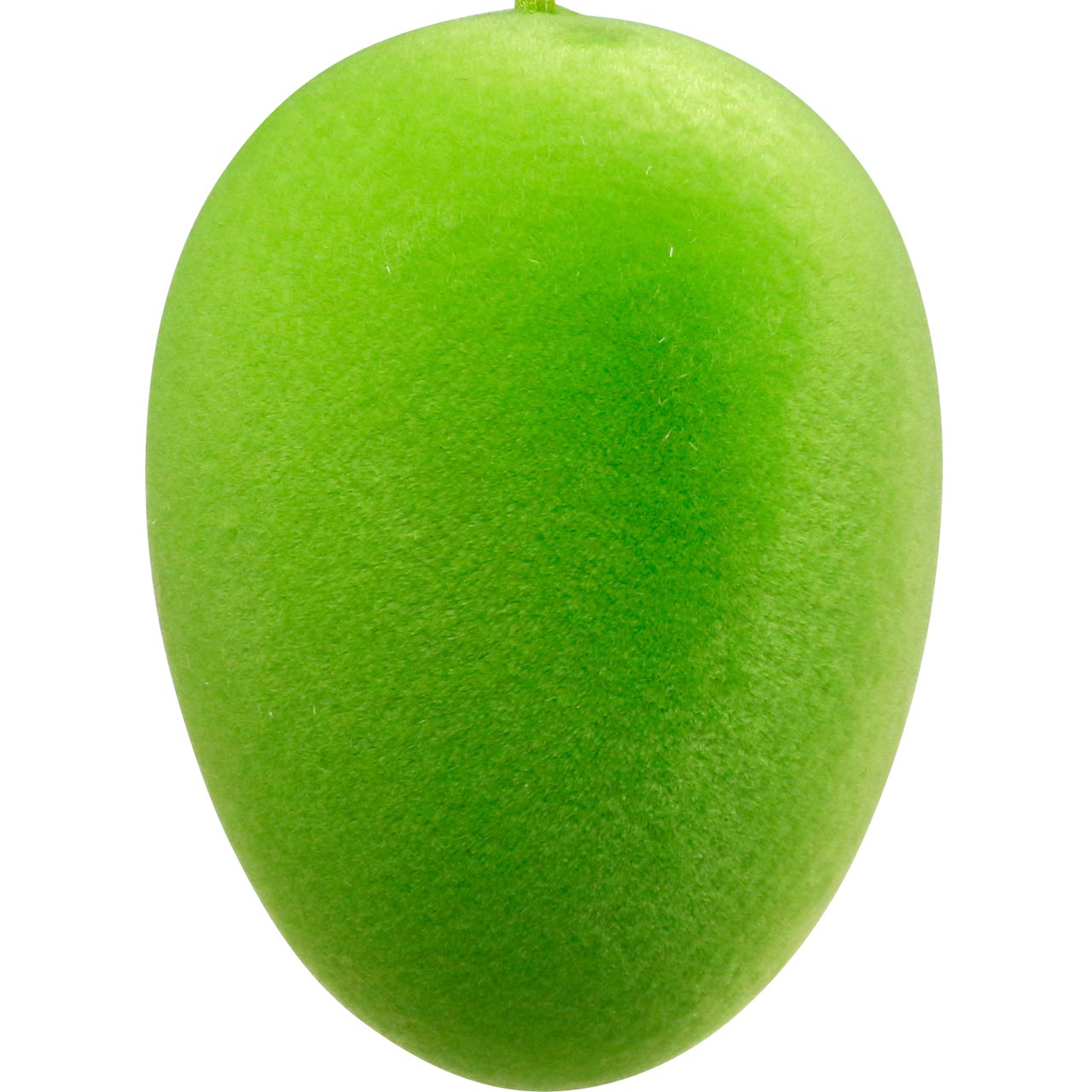 De myke flokkede dekorative eggene kommer til deg i et sett med 8 sortert fire ganger. Settet inneholder to egg i hver farge i grønt, gult, oransje og rosa i en plastpose. Påskeeggene av høy kvalitet laget av uknuselig plast er hver rundt 10 centimeter høye og rundt 7 centimeter i diameter. Satengbåndet til oppheng er ca 8,5 cm langt hver.