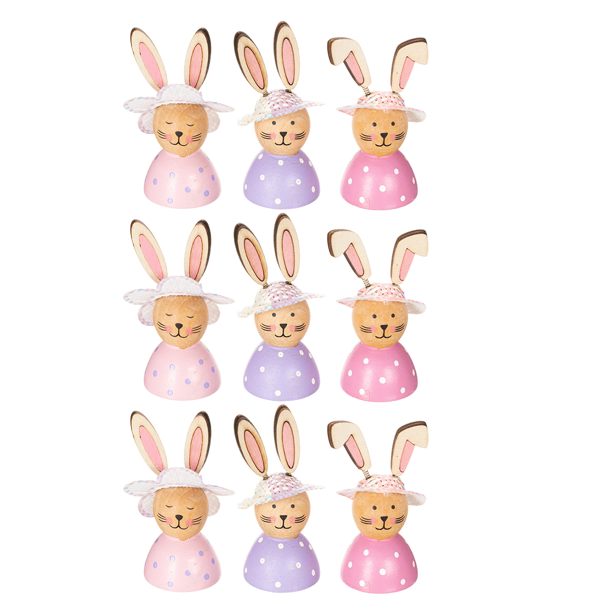 Påskehare-borddekorasjon for våren, dekorative harer med hatter, 7 cm, 9 stk.