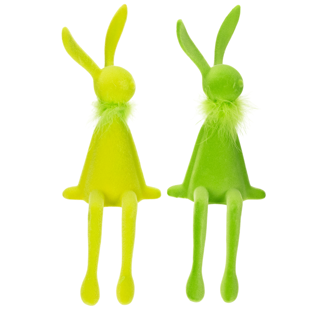 Vil du forvandle hjemmet ditt til et festlig vårland? Disse fortryllende påskeharene, perfekte for å henge på hyller, vil gjøre susen på et blunk! Denne duoen i friske grønnfarger bringer ikke bare påskestemning til hjemmet ditt, men lyser også opp enhver stue. Enten på en hylle, i vinduskarmen eller som et midtpunkt på spisebordet, gir disse fløyelsmyke, flokkede dekorative figurene innredningen din et moderne og lekent preg. Og det beste av alt? Den delikate fjærboaen tilfører det lille ekstra – et skikkelig blikkfang!