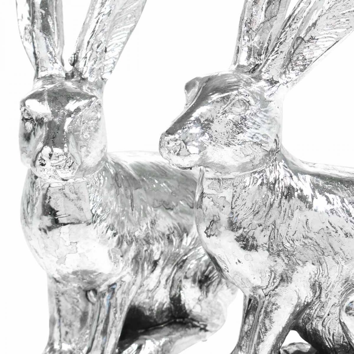 Produktnavn: Påskehare Sittende Sølv Kanin Dekorfigur Påske 13cm 2stk