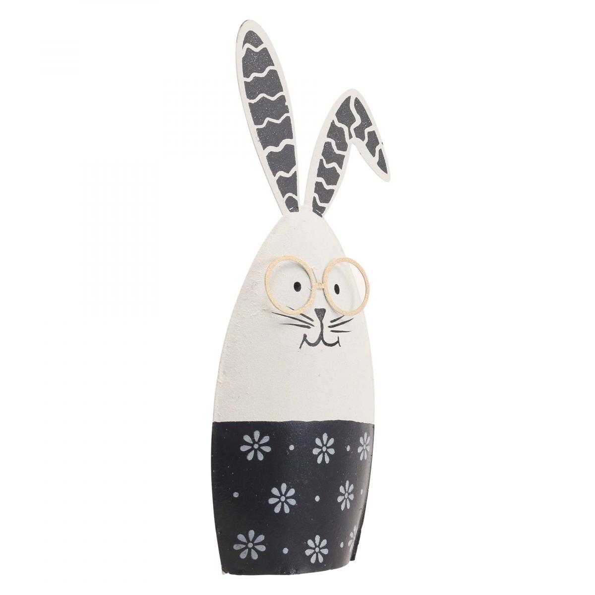 Påskehare svart og hvit kanin med briller metall 18,5x7x3cm 2stk