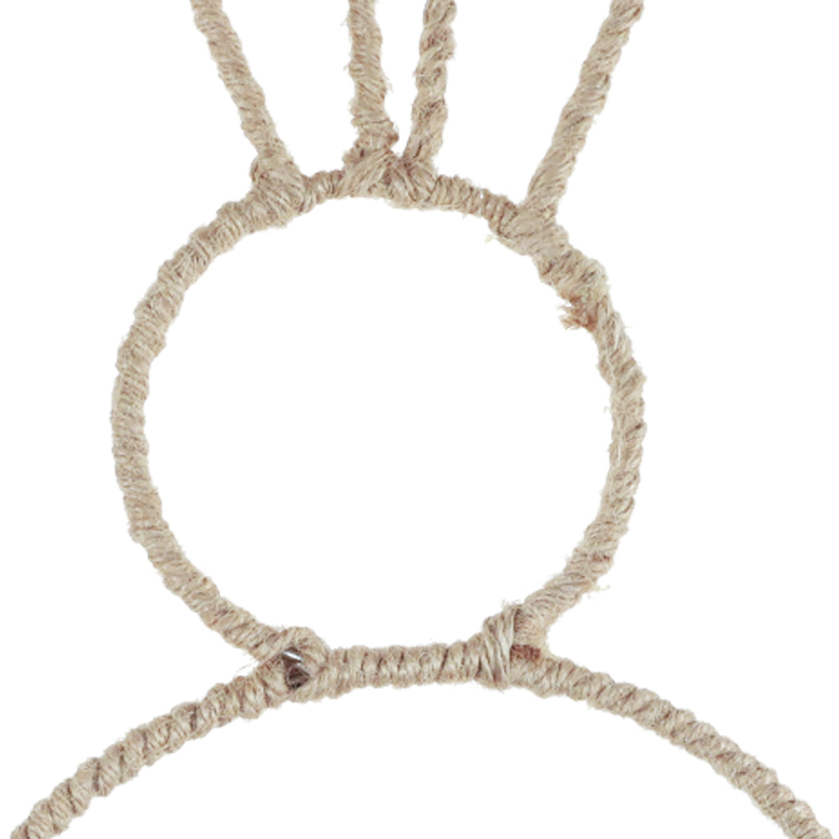 Påskeharepynten er laget av to løkker som ligger ved siden av hverandre. Den lille løkken representerer hodet, den store kroppen. Selvfølgelig skal ørene ikke mangle. Ørene til trådfiguren, som hele påskeharen, er pakket inn i naturfiber.