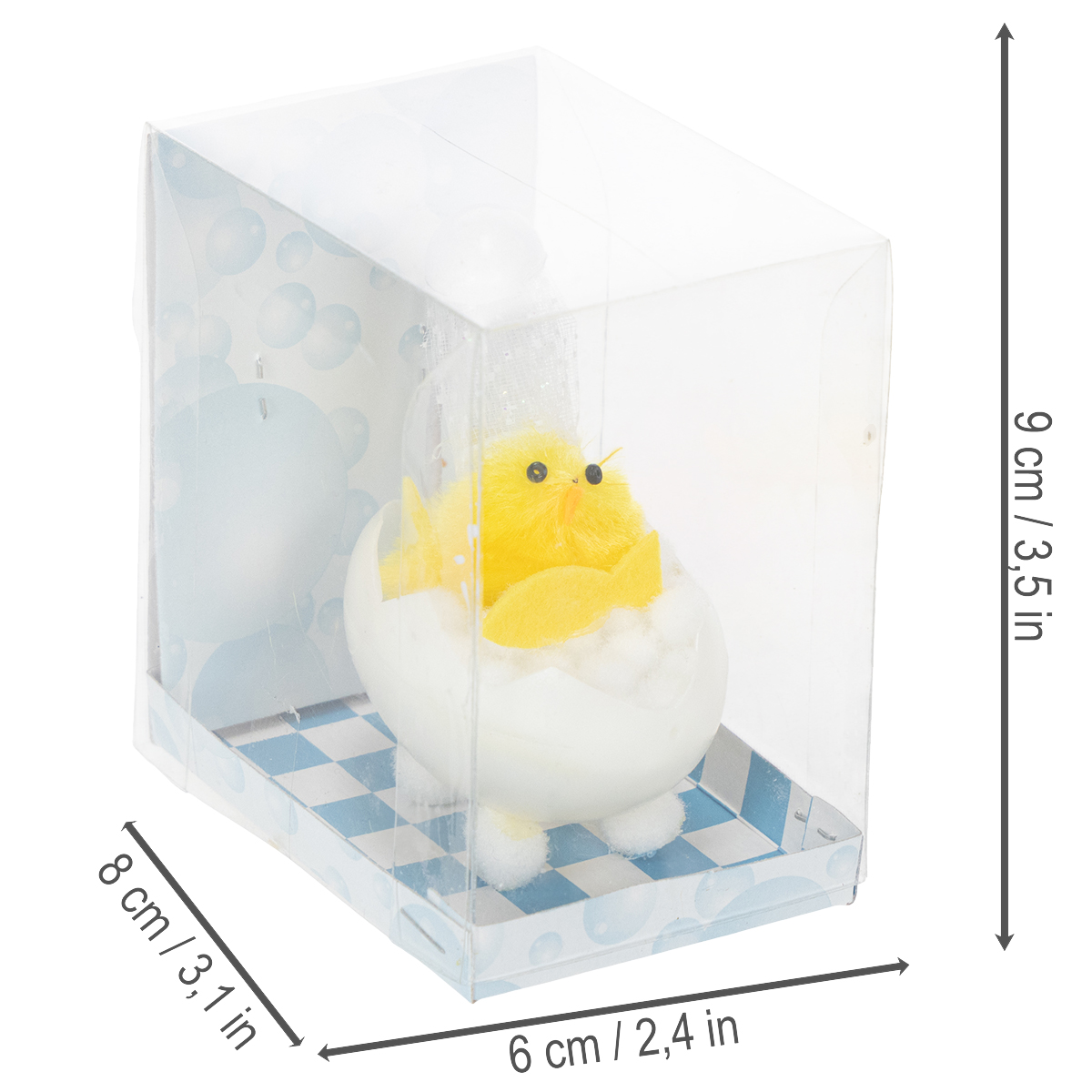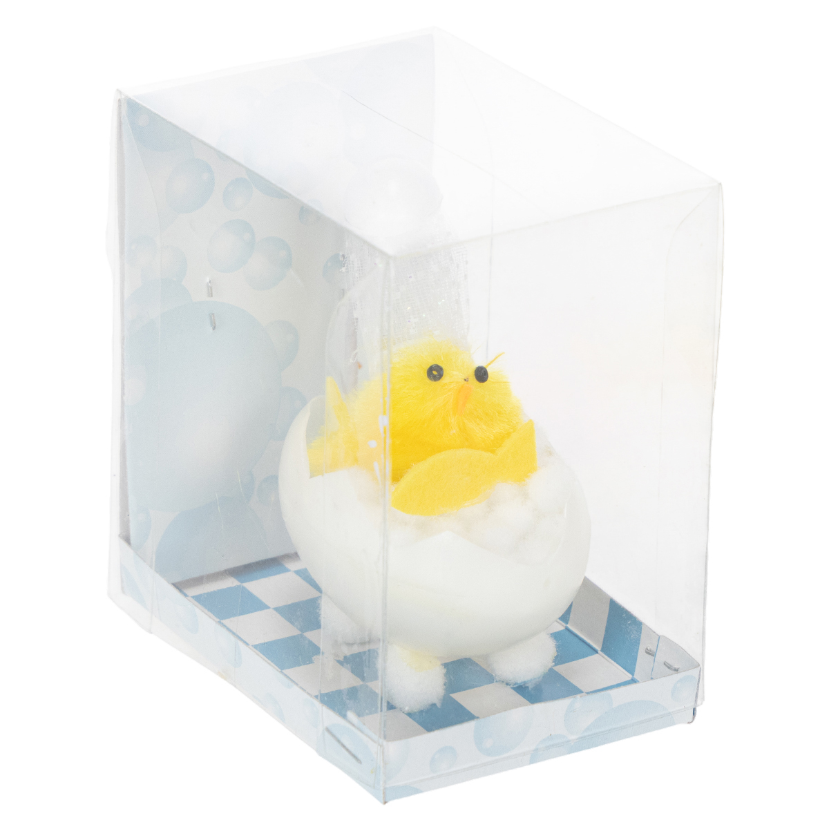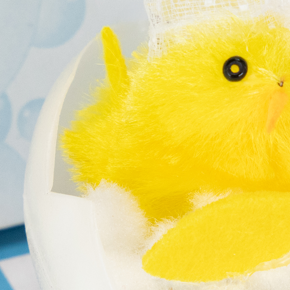 Påskekyllingdekorasjon, chenillekylling i badekaret, gul, 9 cm