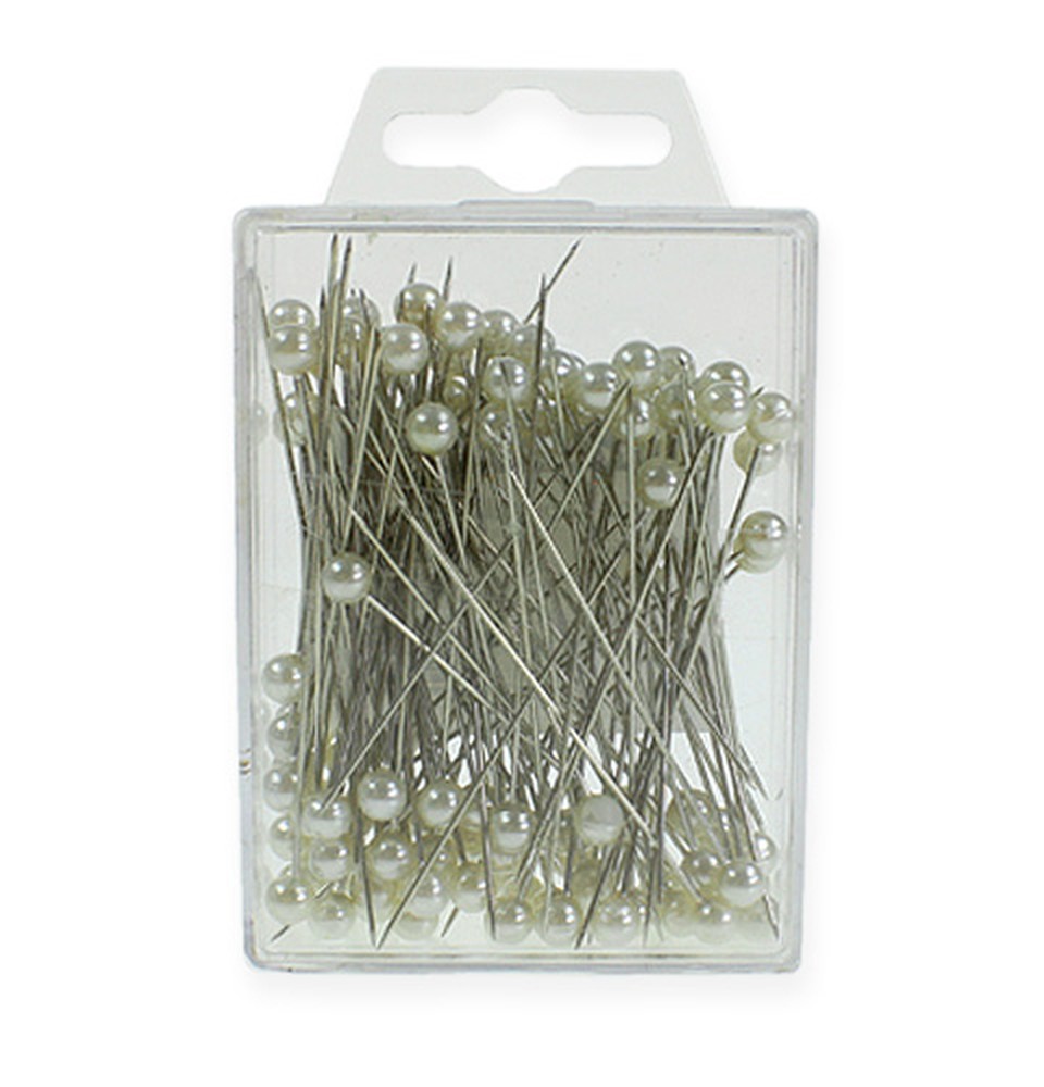 Perlenålene i champagne leveres i en praktisk hengekasse med 100 eksemplarer hver. En nål er omtrent 65 millimeter lang; perlen har en diameter på ca 6 millimeter.