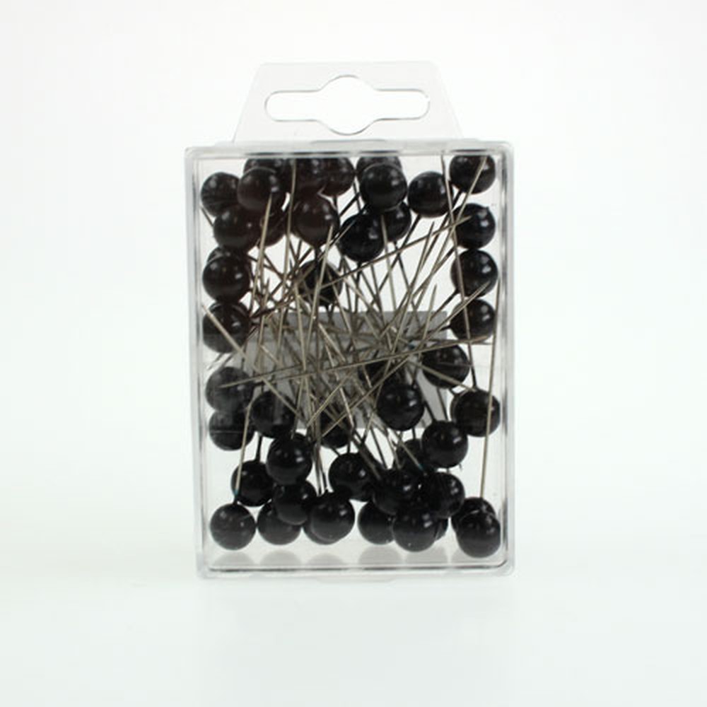 De sorte og sølvfargede perlehodepinnene blir levert til deg i en liten, praktisk plasteske på 50 stykker. Hver nål er rundt 60 millimeter lang, og hver perle måler rundt 10 millimeter i diameter.