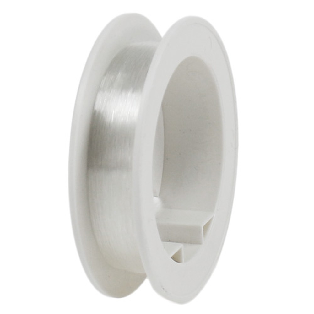 Du får den gjennomsiktige perletråden med en total lengde på ca 50 meter rullet opp på en praktisk spole. Diameteren er omtrent 0,25 millimeter.