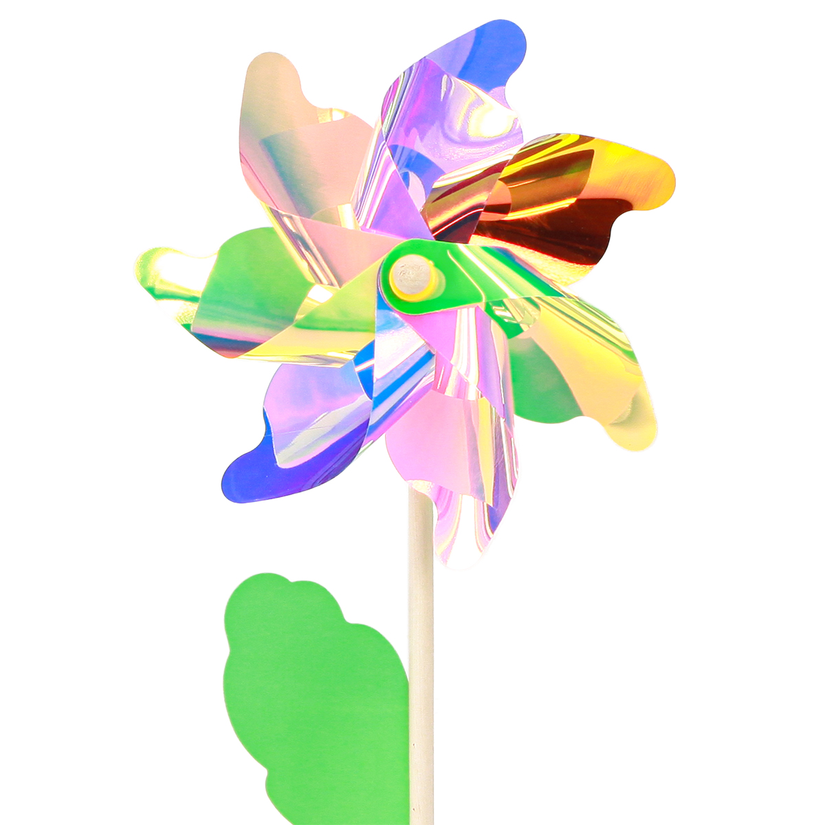 Pinwheel Blomst med Blad Vindmølle Iriserende Farger Ø24cm 2stk
