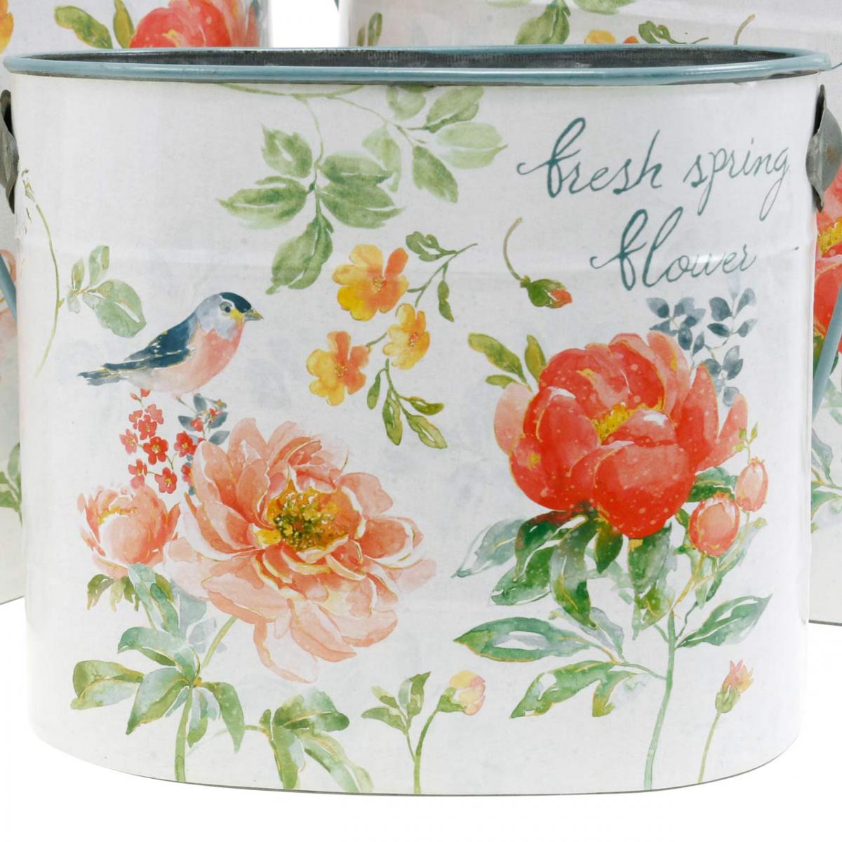 Plantebøtte oval vintage vårdekorasjonsplanter metall 26/22 / 17cm sett med 3