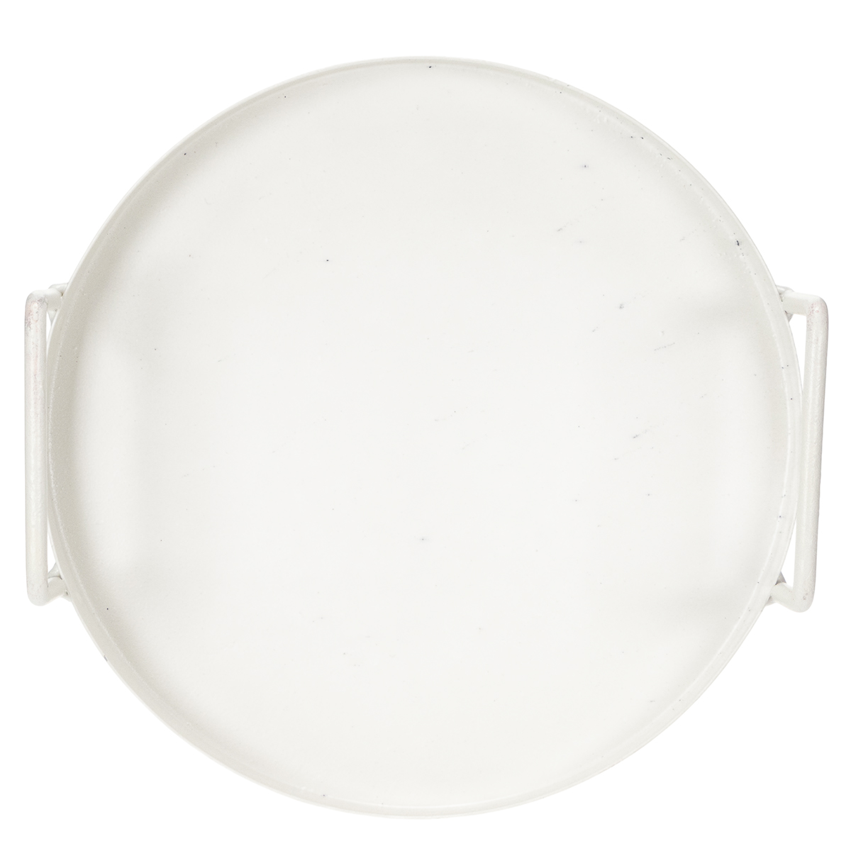 Med sin kompakte diameter på 18 cm passer dette brettet inn i en rekke omgivelser. Det passer like godt til et vakkert dekket bord (tenk en stilig minibar!) som til blomsteroppsatser eller en rustikk stue i landlig stil. Lurer du på hvilket materiale det er laget av? Robust metall, lakkert i strålende hvitt – dette plantebrettet tåler enhver utfordring. Klar til å gi hjemmet ditt et spesielt preg?