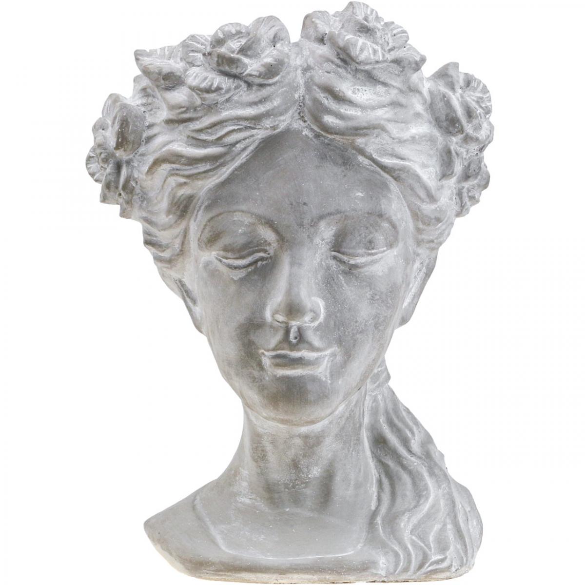 Plantehode betong plantekasse kvinnehode hvitvasket H34cm