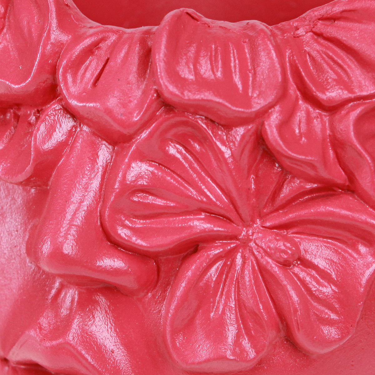 På blomsterspråket representerer den sterke rosa fargen på plantehodet lekenhet, ungdommelighet og energi. Denne nyansen bringer liv til ethvert rom og kan fremme glede og kreativitet. Polyresin som materiale gir plantekassen en slitesterk og lettstelt tekstur, som er ideell for dekoratører og håndverksentusiaster som leter etter fleksibel, men slitesterk dekorasjon. Rosa kan kombineres med myke pastelltoner eller kontrastfarger som grønn eller hvit for å fremheve ønsket atmosfære.