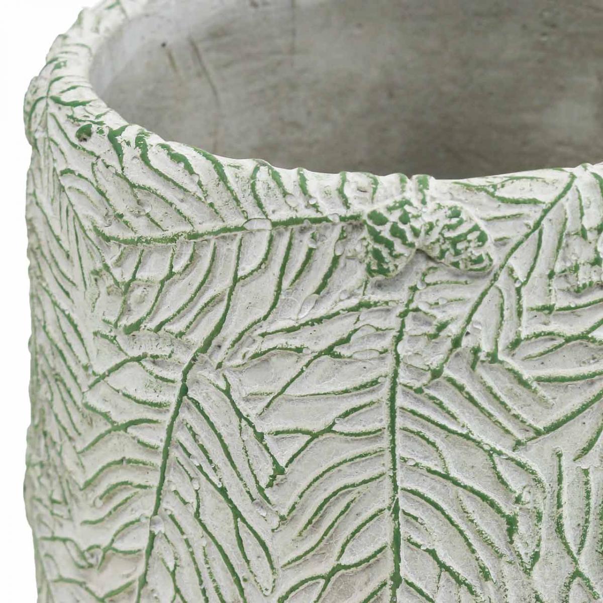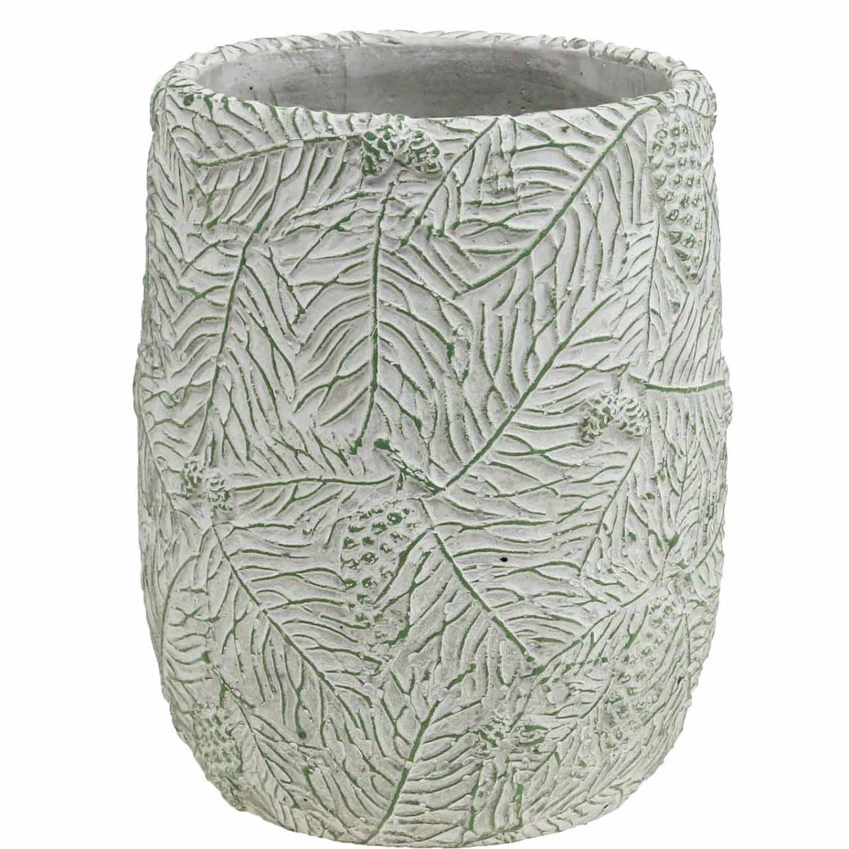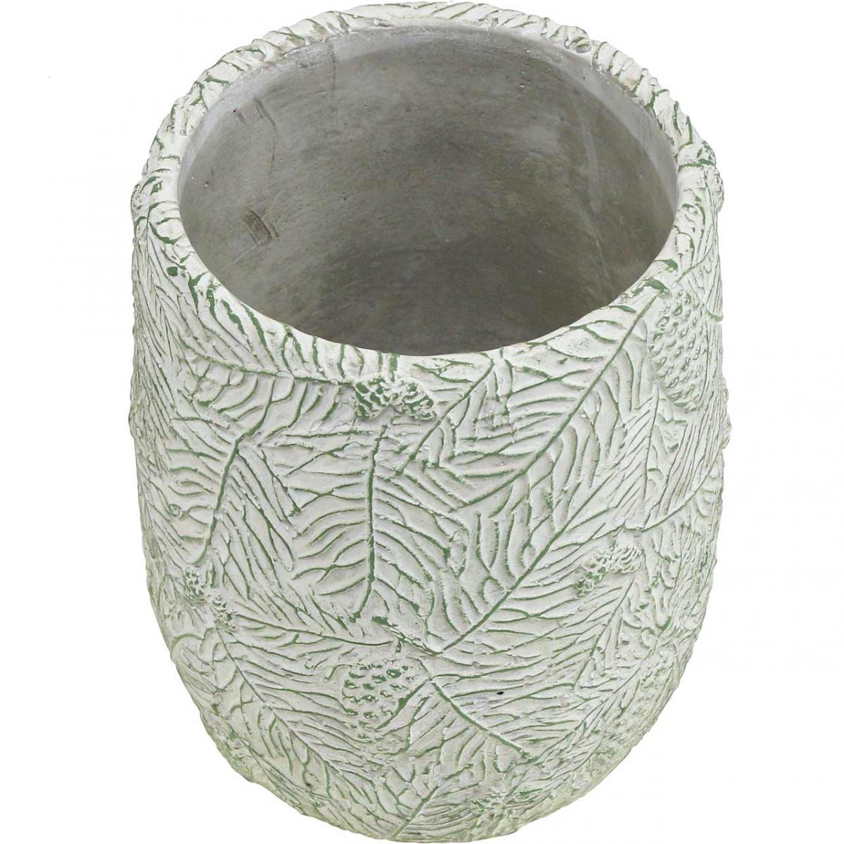 Plantekar keramikk grønn hvit grå furukvister Ø12cm H17,5cm