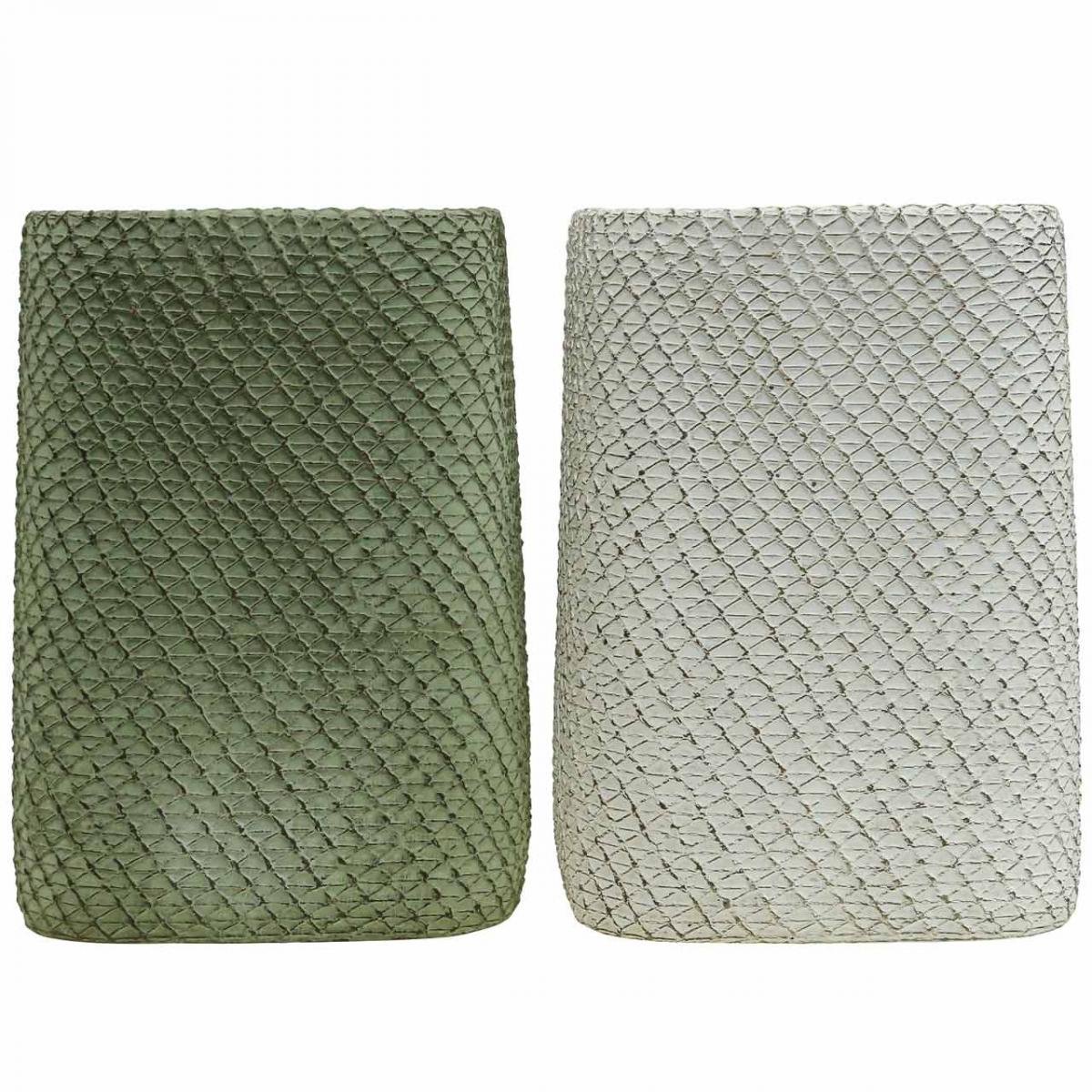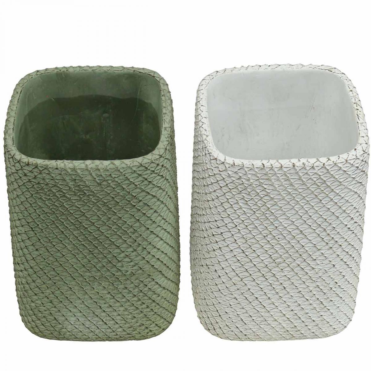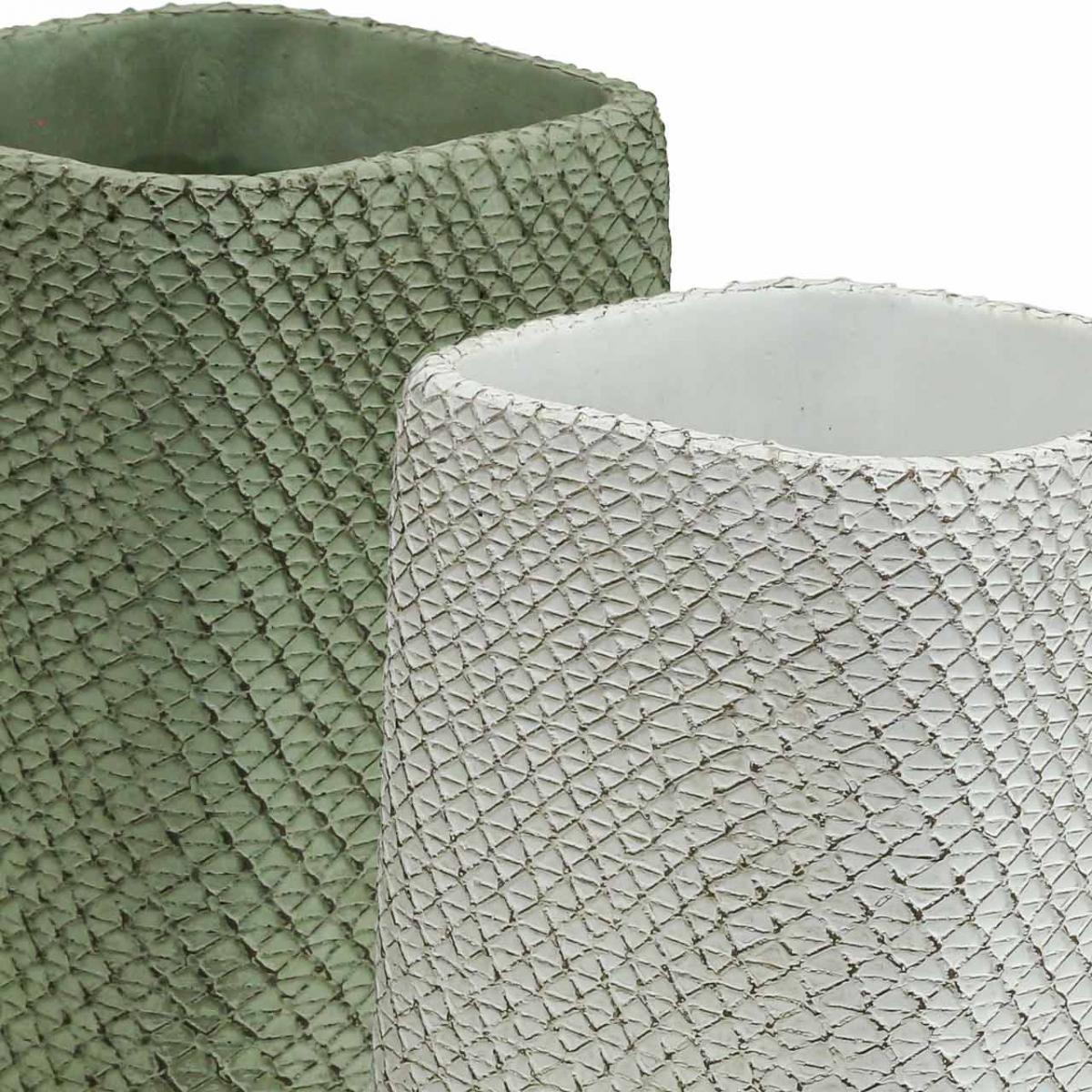 Plantekar keramisk hvit grønn relieff mesh 12x12cm H17,5cm 2stk