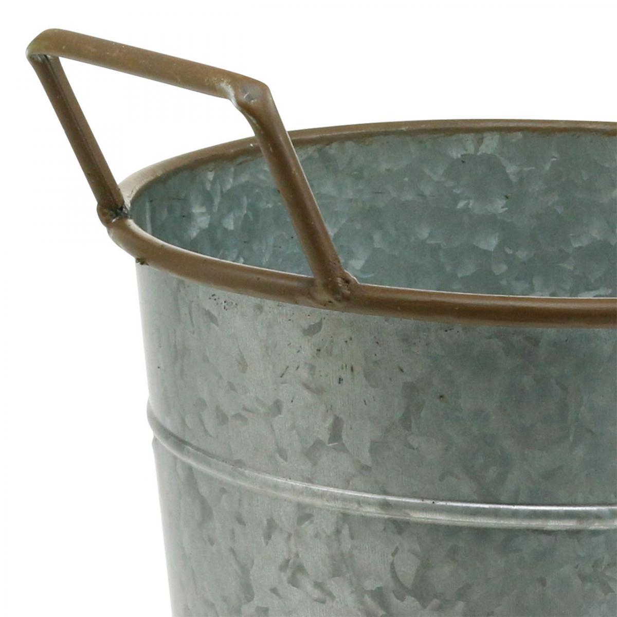Plantekar med håndtak, metallbeholder for planting, plantekrukke sølv, brun Ø24cm H32,5cm
