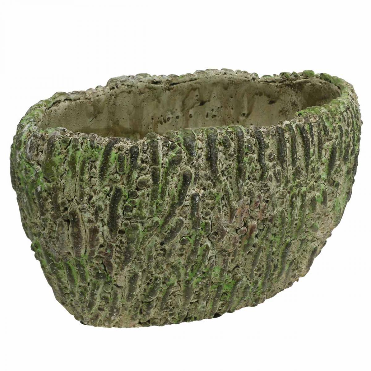 Produktnavn: Plantekasse betong oval antikk utseende grønn, brun 24×14×13cm