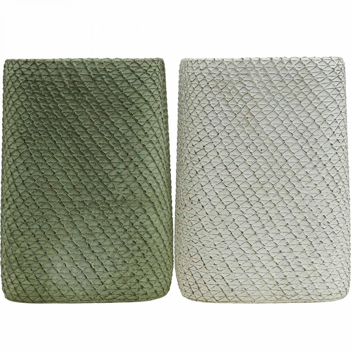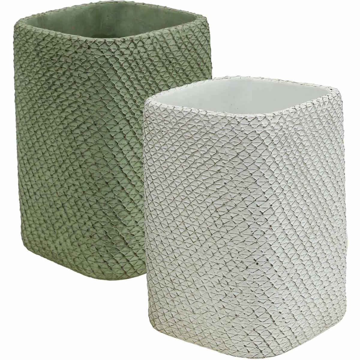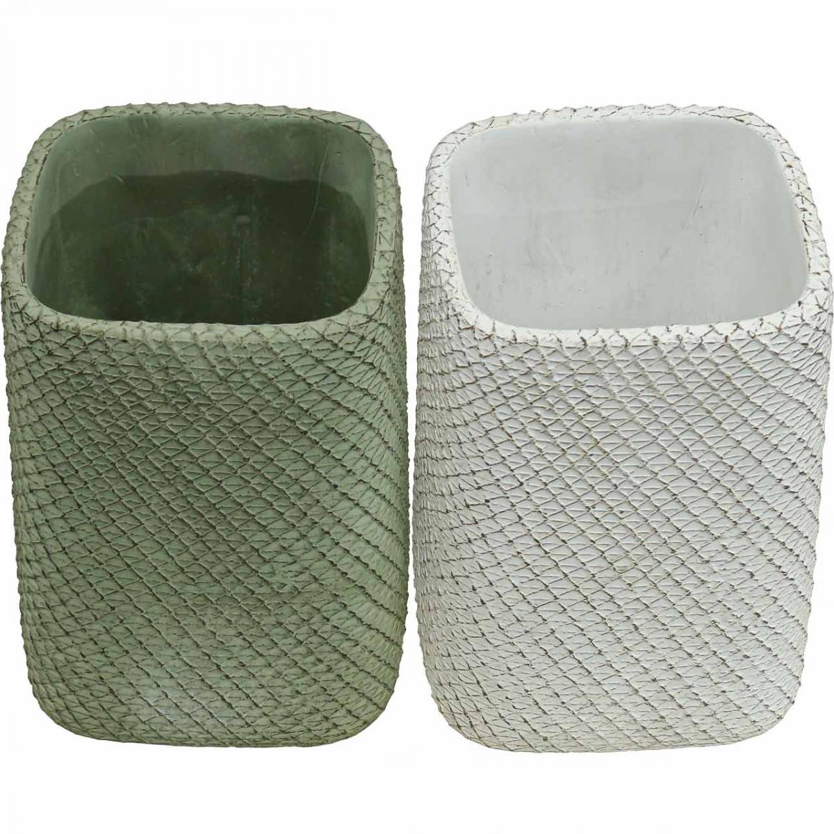 Plantekasse keramisk hvit grønn relieffnetting 14x14cm H21,5cm 2stk