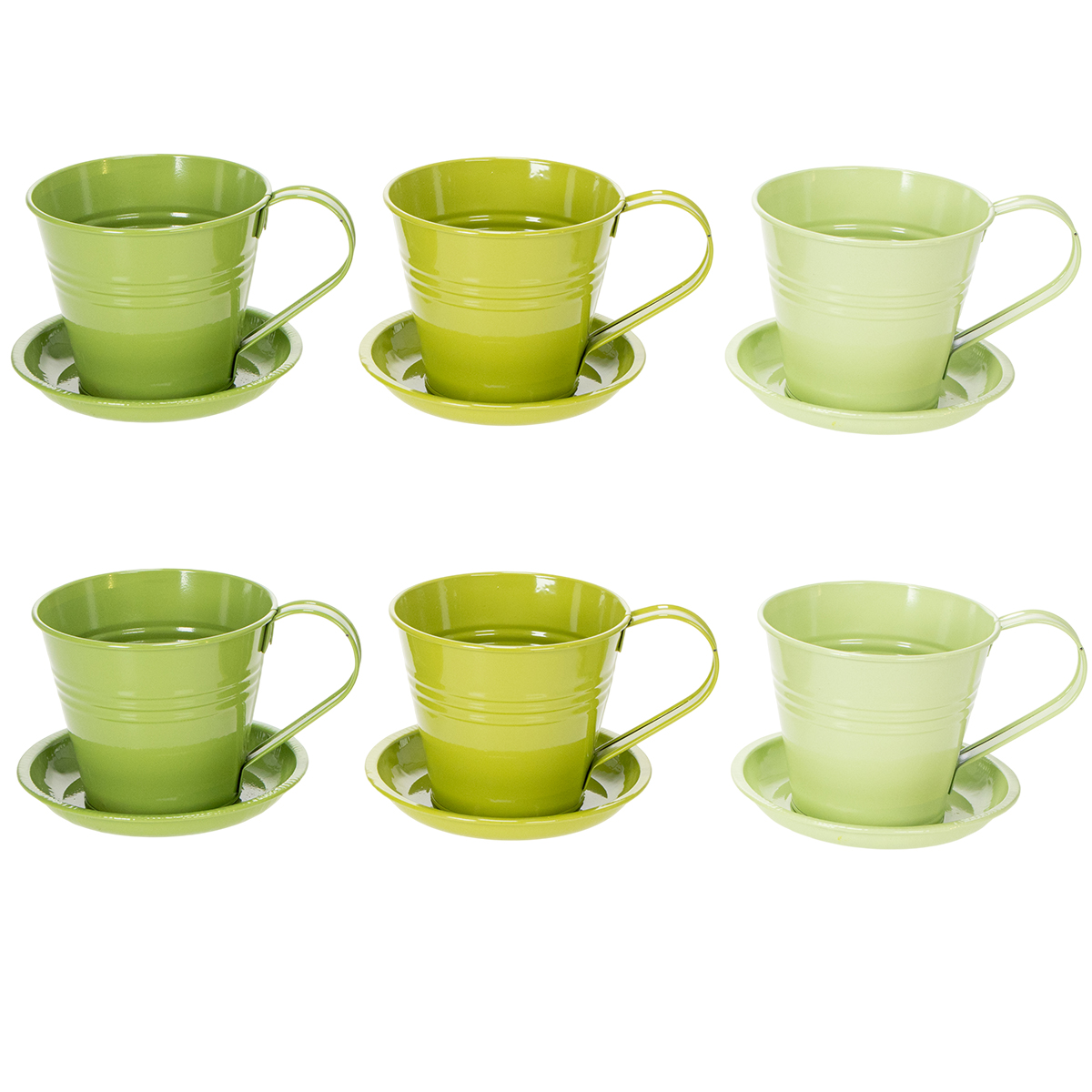 Leter du etter en virkelig unik dekorasjonside? Ta en titt på denne sjarmerende tekoppformede blomsterkrukken! Med sitt vintage-utseende og muntre farger er den et skikkelig blikkfang for hjemmet ditt. Tenk deg hvor fortryllende små sukkulenter, friske urter eller vårblomster ville sett ut i denne metalltekoppen. Enten det er på skrivebordet, i vinduskarmen eller som et høydepunkt på stuebordet – denne lekne dekorasjonen gir umiddelbart et snev av hygge og personlighet til ethvert rom. Og det beste av alt? Blomsterkrukken kommer i et praktisk sett på seks, slik at du kan bringe flere kreative prosjekter til live. La fantasien løpe løpsk og skap din egen personlige oase av velvære!