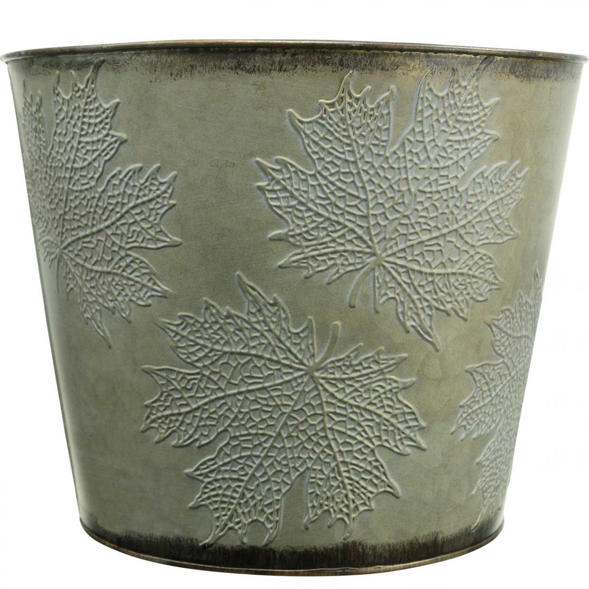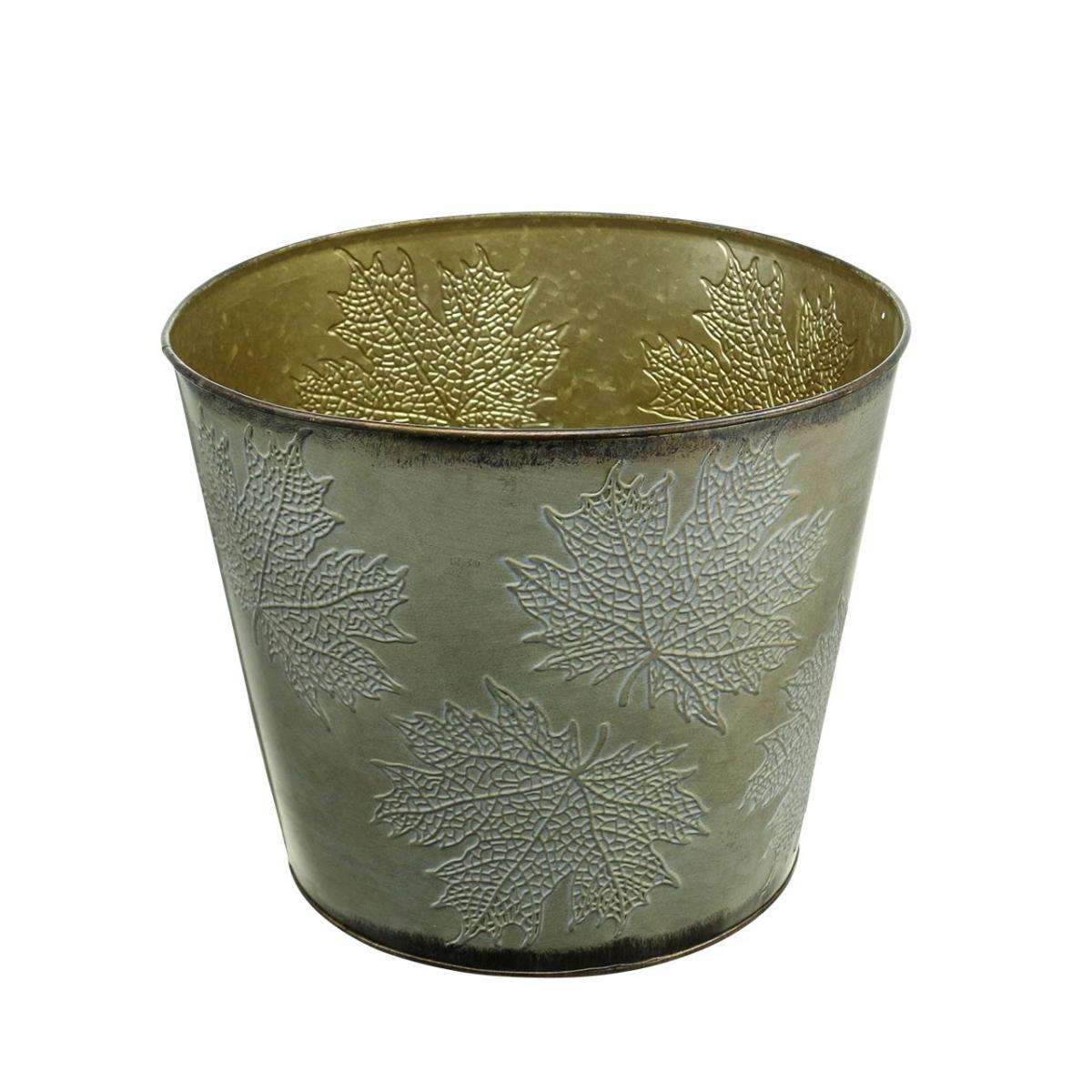 Plantekrukke, høstdekor, metallkar med blader gyldne Ø25,5cm H22cm