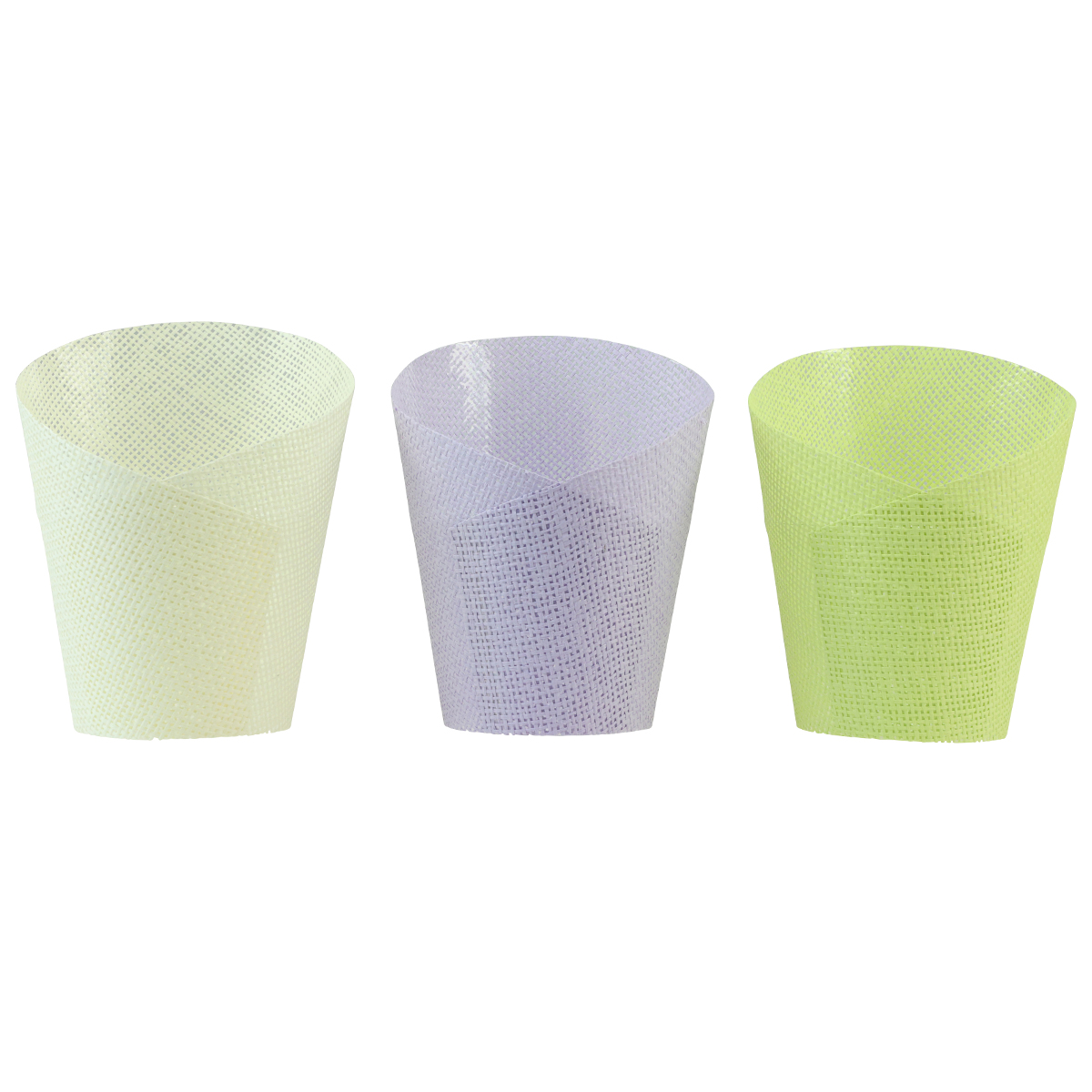 Produktnavn: Plantekrukke vevd papir grønn gul lilla Ø9cm H18cm 9 stk