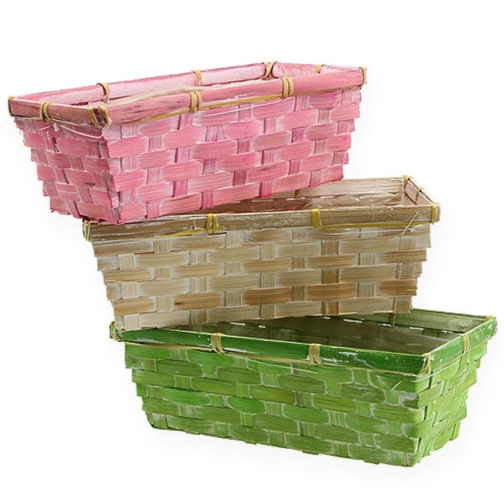 Hver firkantede plantekurv fra flerfarget sett er omtrent 20 x 11 x 7 centimeter. Fotavtrykket måler omtrent 16 x 7 centimeter. I settet med åtte stykker er fargene rosa og grønt tilgjengelig tre ganger, fargen naturlig to ganger.