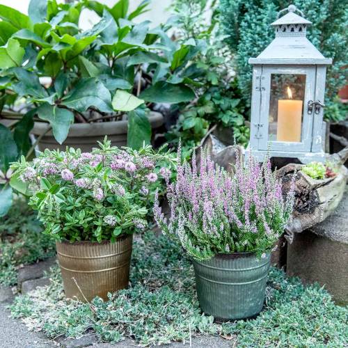 Enten om våren med hyasinter, påskeliljer eller cyklamen eller resten av året med deilige urteplanter, eviggrønne lyng eller ganske permanente blomster som jasmin, fuchsia eller lobelia - de metalliske blomsterpottene i skinnende oransje, brun og oransje ser bra ut på din balkong hele året eller i hagen.Plasser flere av plantepottene i forskjellige størrelser på en blomstertrapp - blomsterpottene er også veldig vakre hvis de er ordnet på en blomsterblomst. En enkelt sinkpotte plantet med palmer eller anthurium ser veldig dekorativ ut i interiøret på et lite sidebord. Spesielt i stuen bør du dekke til pottene med folie før du planter dem, slik at de er 100% vanntette og ikke ruster.