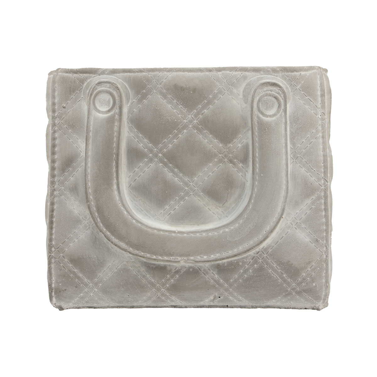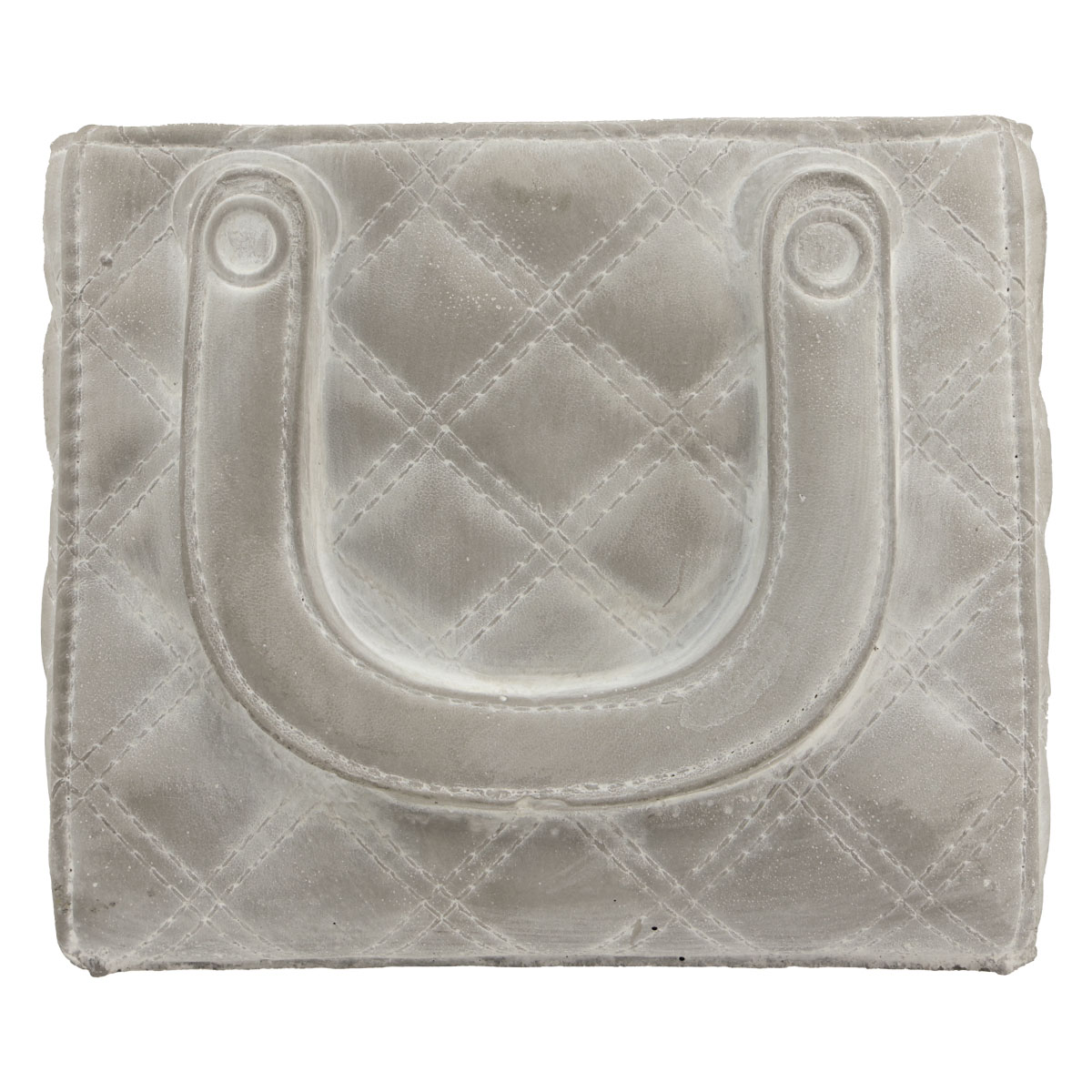 Betongdekorasjonen gjenskaper en elegant veske, helt ned til de detaljerte sømmene. De fint blekede detaljene på overflaten løfter plantekrukken helt inn i luksussegmentet. For å være på den sikre siden bør du kle innsiden av betongpotten med folie før planting for å hindre at fukt slipper ut.