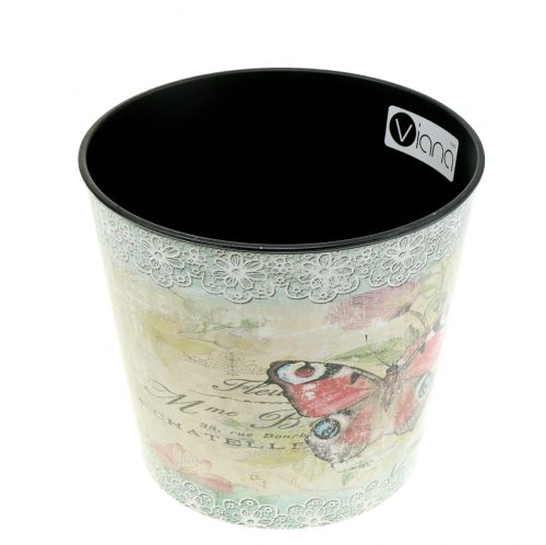 En plantepotte som utstråler en fantastisk vintage-ånd! Med denne nydelige dekorative gryten kan du sette sjarmerende aksenter både i hagedekorasjonen og i interiøret. Den robuste plastgryten har et design i det franske romantiske utseendet, bestående av blomsterpynt, en fransk dekorativ font og en fantasifull sommerfugl. Det fortryller!