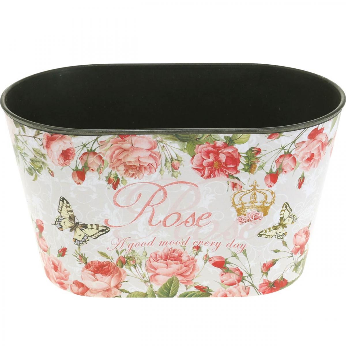 Plastbollen imponerer med sitt ekstremt sjarmerende motiv av peoner og sommerfugler, som rammer inn den trykte bokstaven «Rose – Godt humør hver dag» på begge sider. I bakgrunnen pryder det vakre blomsterkaret med rosedekor også en rosa overflate med buede blomsterpynt.