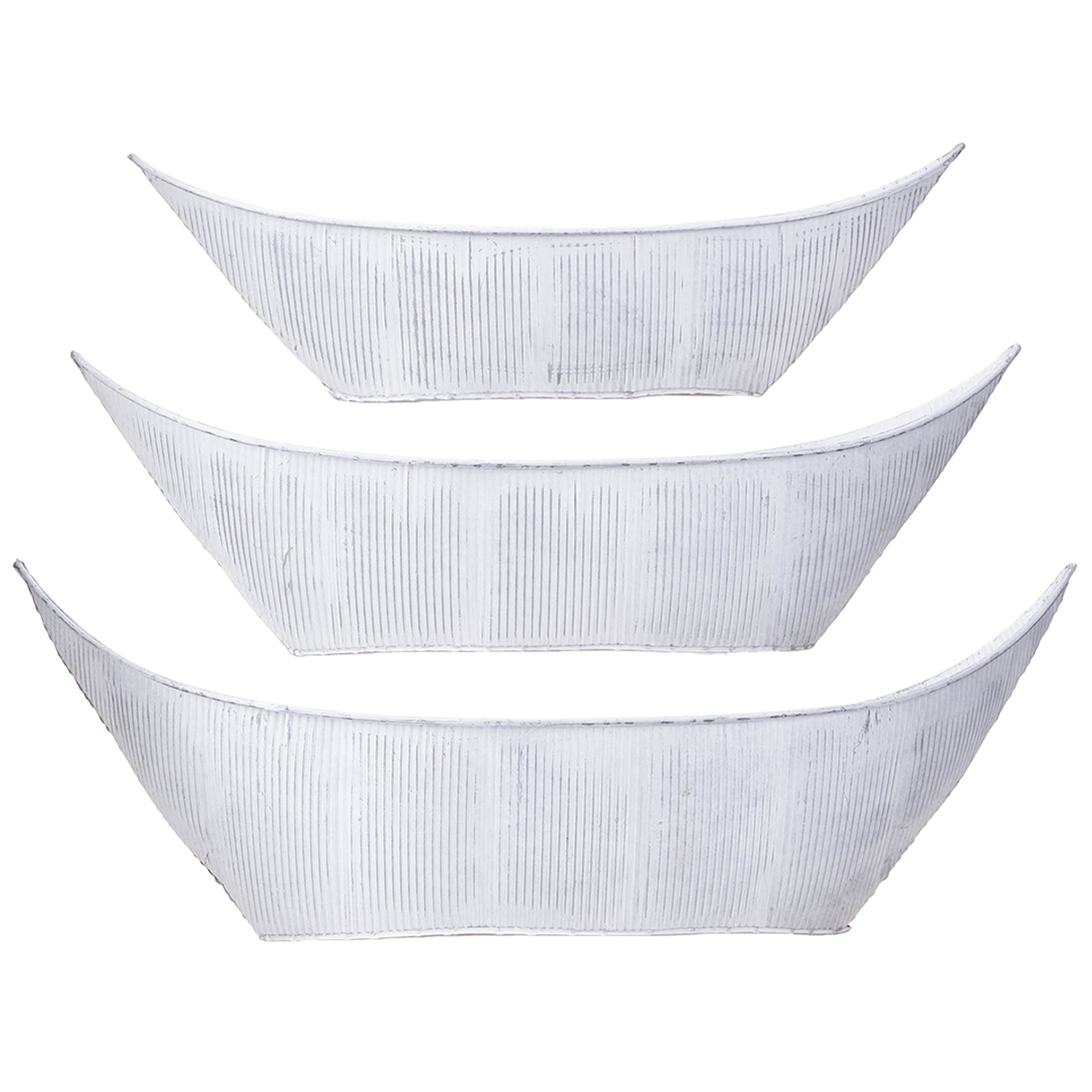 Planteskål båt metall hvit sølv 54,5/48/42 cm sett med 3