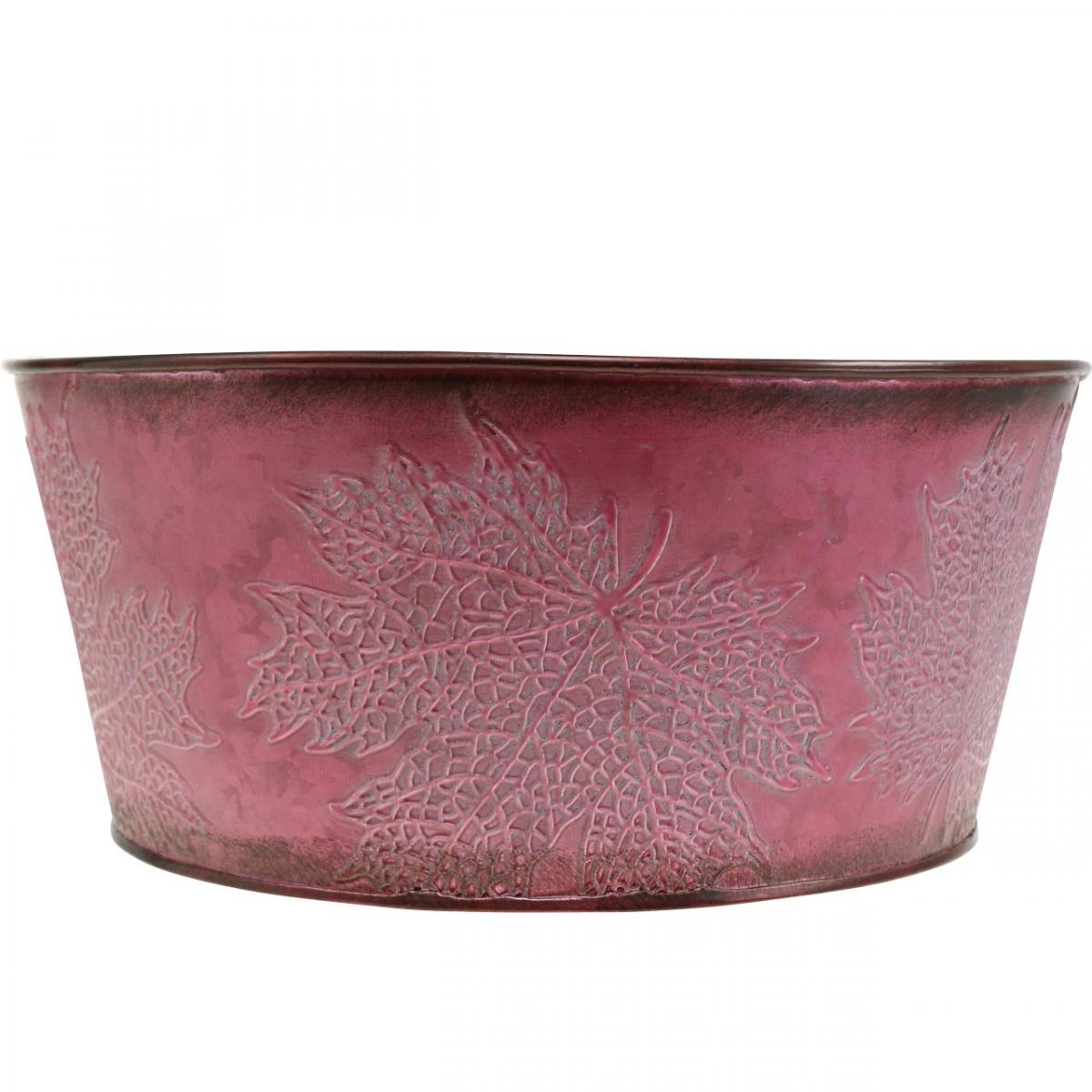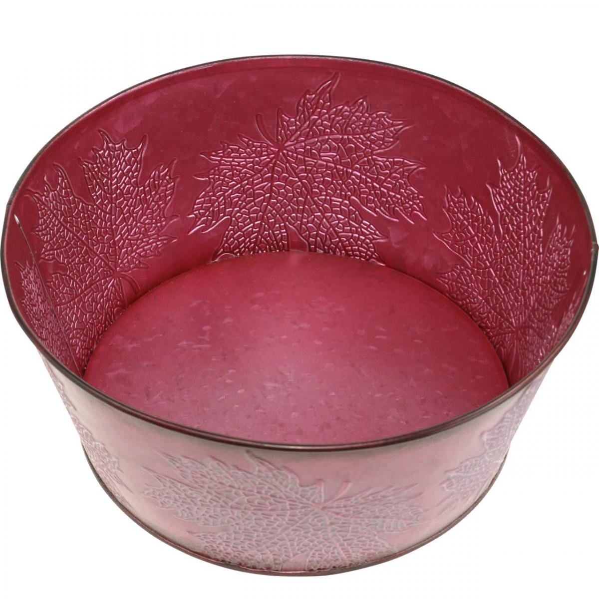 Produktnavn: Planteskål for høsten, metallbeholder med bladdekor, dekorativ potte vinrød Ø25cm H11cm