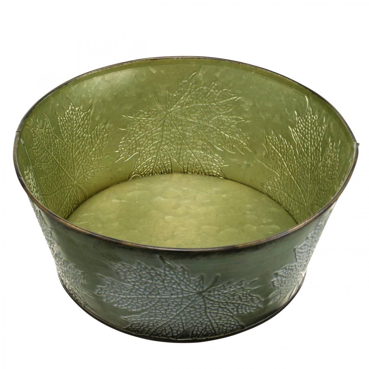 Planteskål med lønneblader, høstdekorasjon, metallkar grønt Ø25cm H11cm