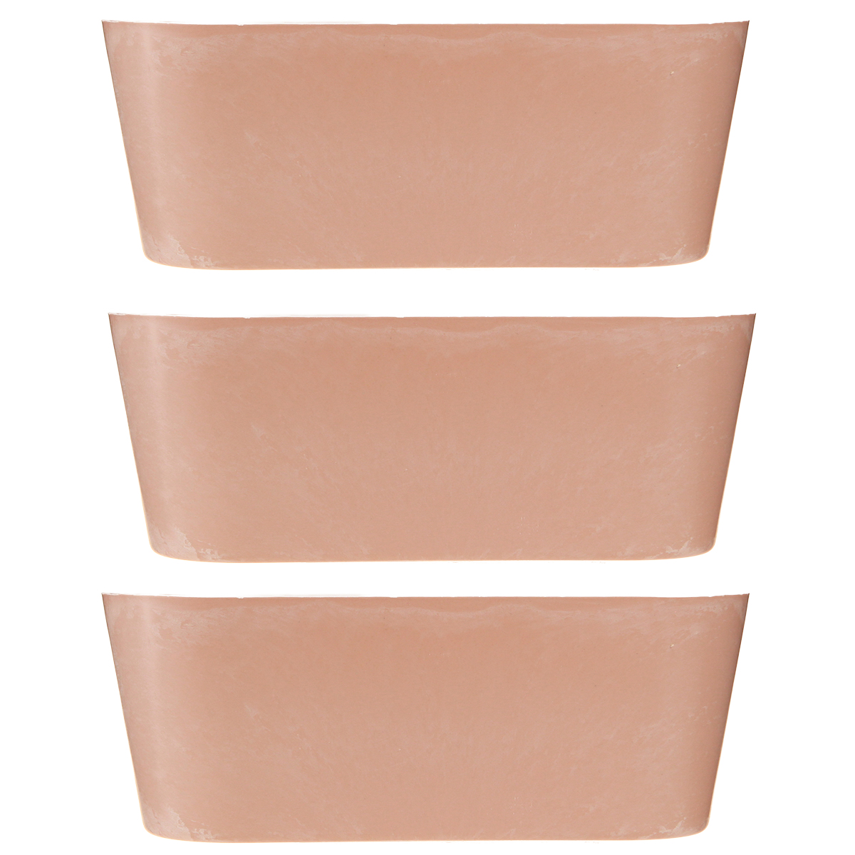 Planteskål oval pynteskål plast rosa brun 27×11×10cm 3stk