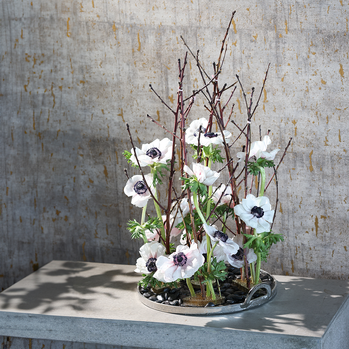 Steckigel Kenzan Quarter kommer til deg i en kvart sirkelform. Stinneholderen i sølvmetall er utstyrt med 300 skarpe messingnåler. Et avtagbart gummifeste på undersiden av nålefrosken sikrer et sikkert stativ og beskytter også sensitive overflater.