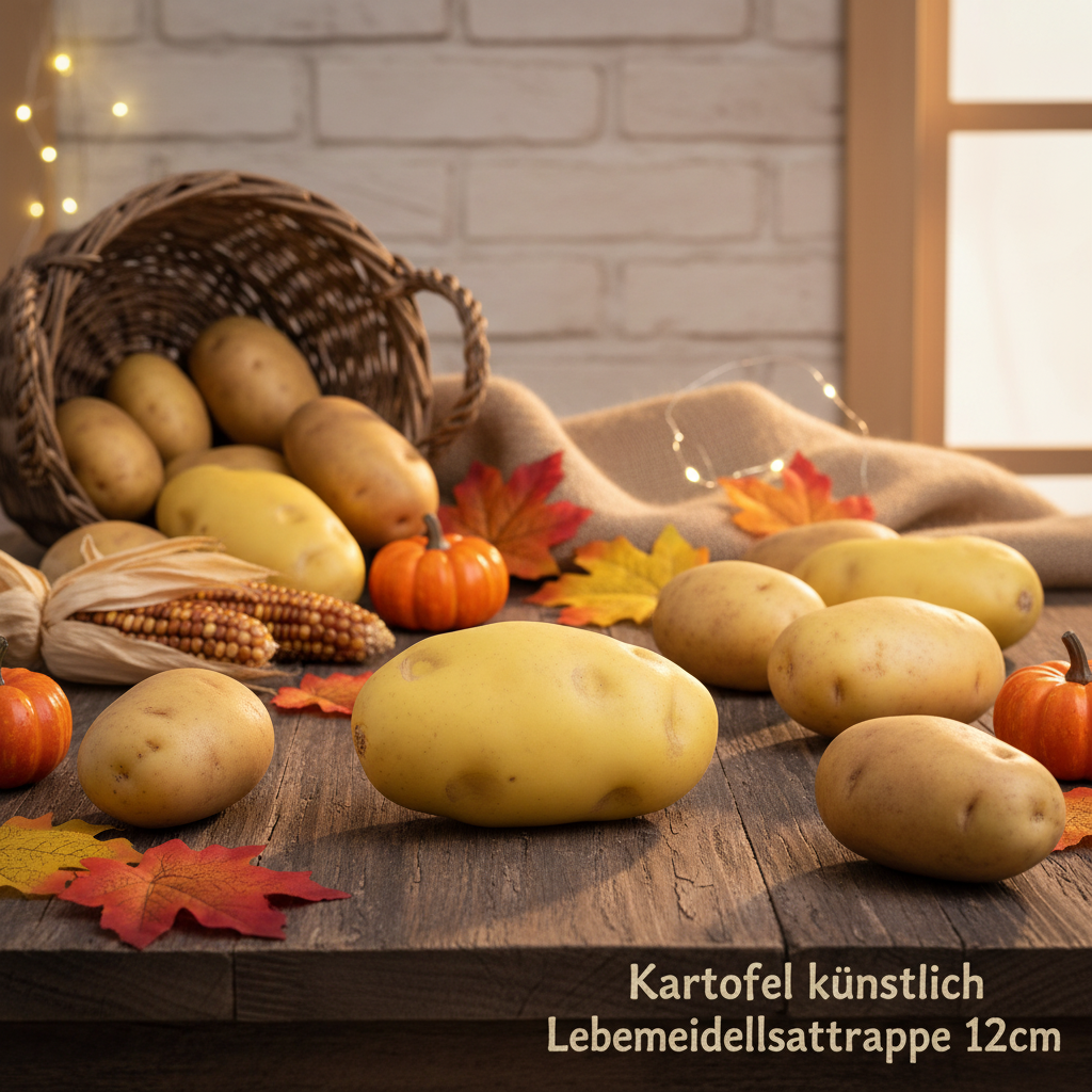 Den perfekte dekorasjonen for kjøkkenet og spisebordet: Denne kunstige poteten, som botanisk kalles Solarum tuberosum, ser villedende ut som originalen. Denne grønnsaksdekorasjonen kan enkelt plasseres i butikkvindusdekorasjonen!