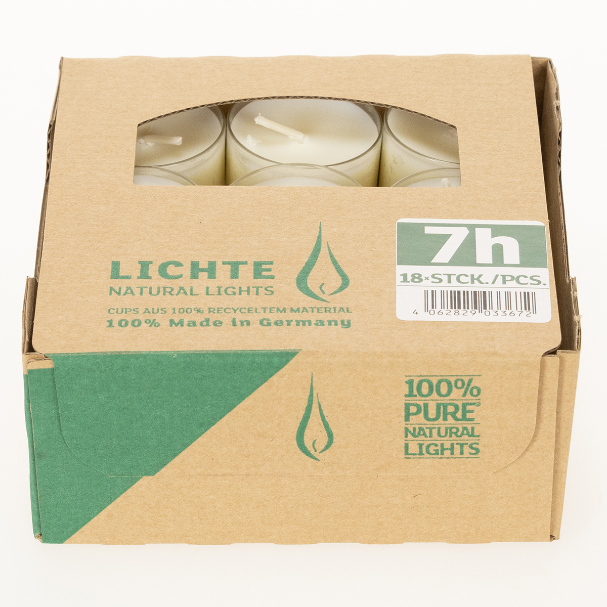 PURE Nature Lights Telys Rapsvoks Naturlig Brennetid 7 timer 18 stk