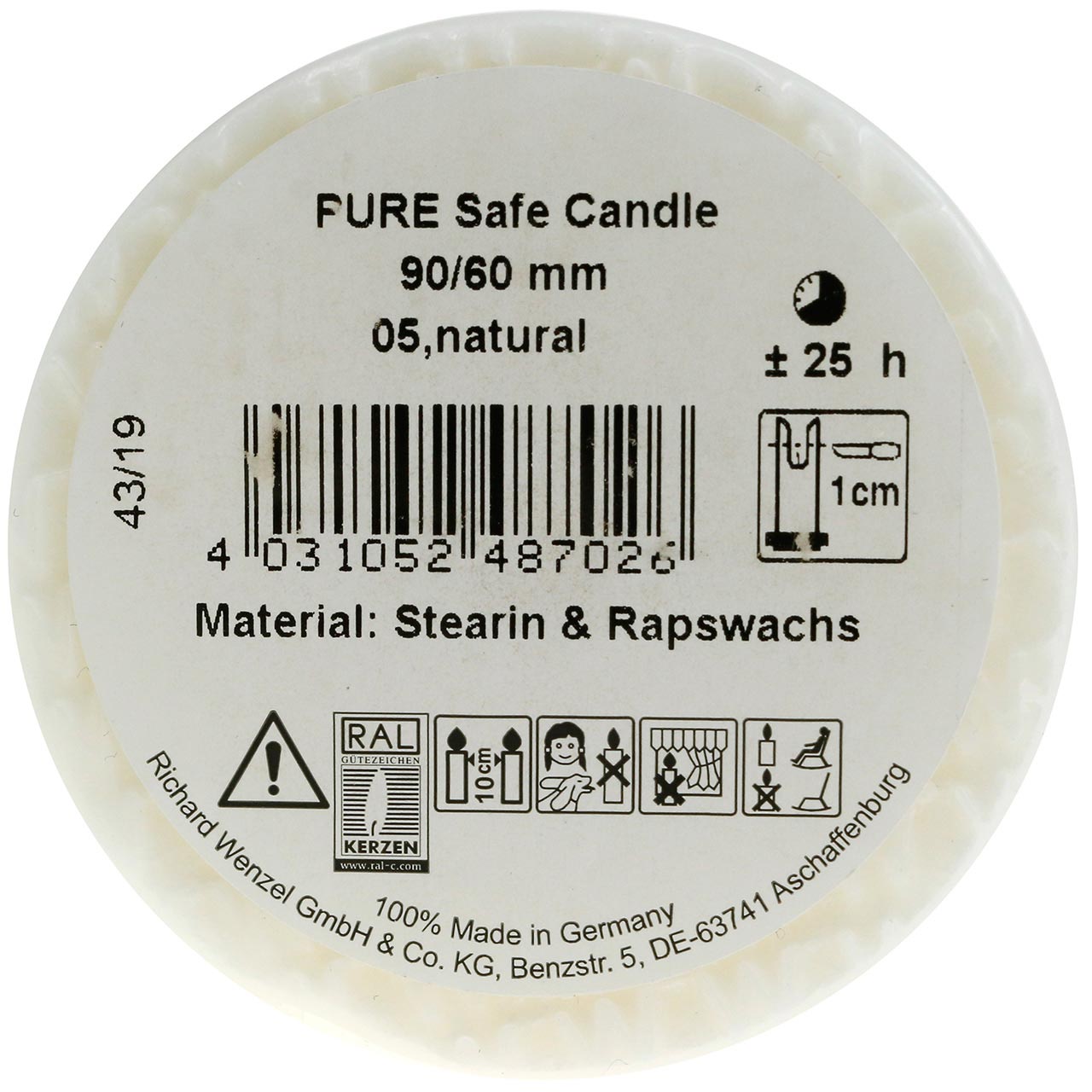PURE Nature Safe Candle søyle lys stearin, raps voks 90/60mm hvit 1 stk.