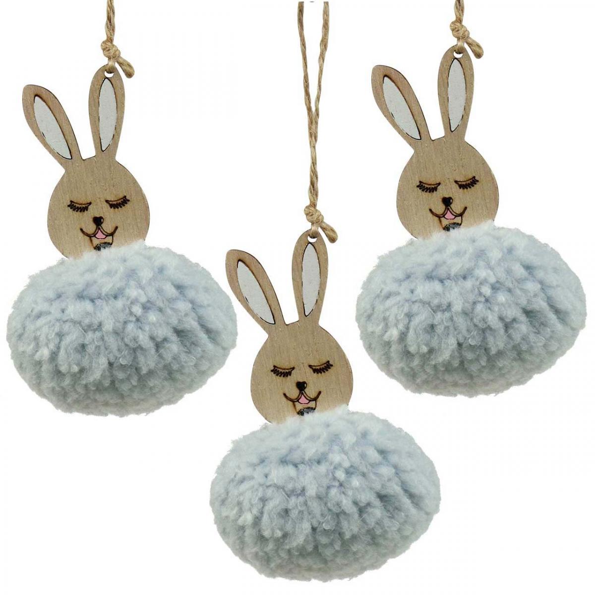 Puschelbunny blå deco anheng tre plysj ca 7×7×10cm 6stk