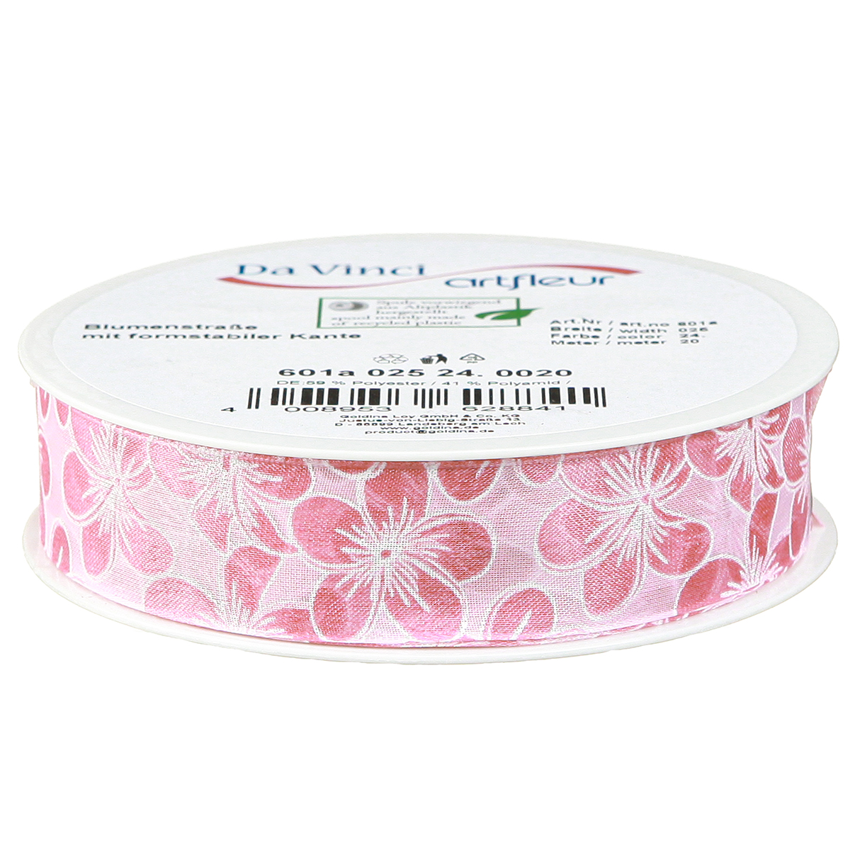 Pyntebånd med blomster gavebånd vårrosa 25mm 20m