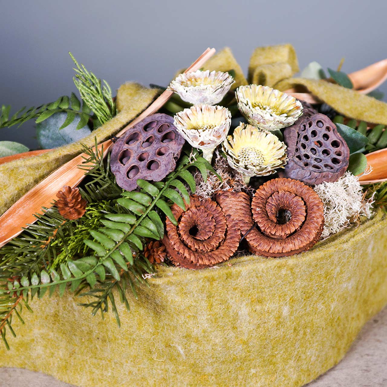 Håndter tørkede blomster og naturmaterialer forsiktig for å unngå brudd og støvdannelse.